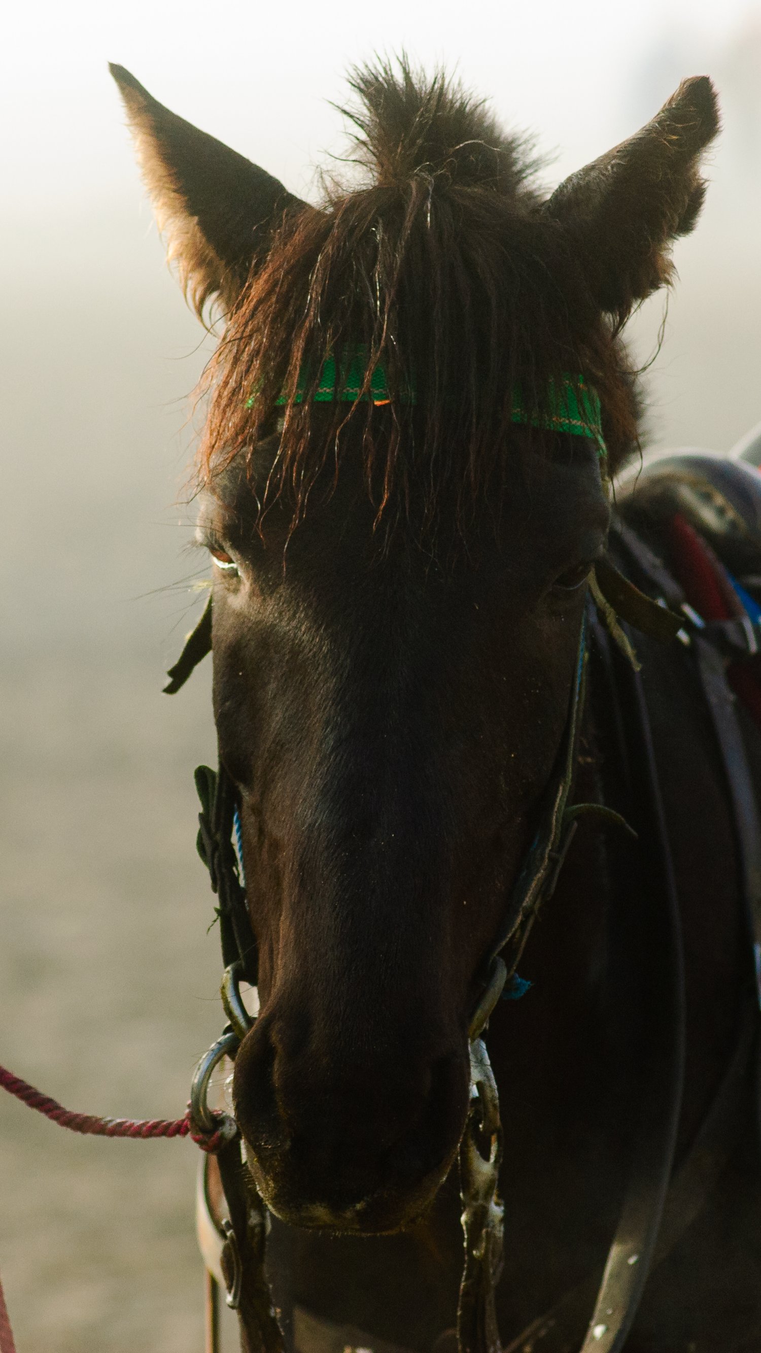 "There is a haunting beauty in the way these horses wait for the sun to break through the Bromo fog. It's a testament to patience and grace."