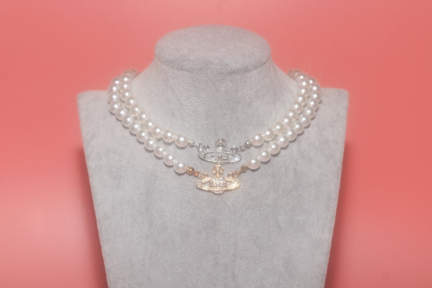 Gold Vivienne Westwood Mini Bas Relief Pearl Choker