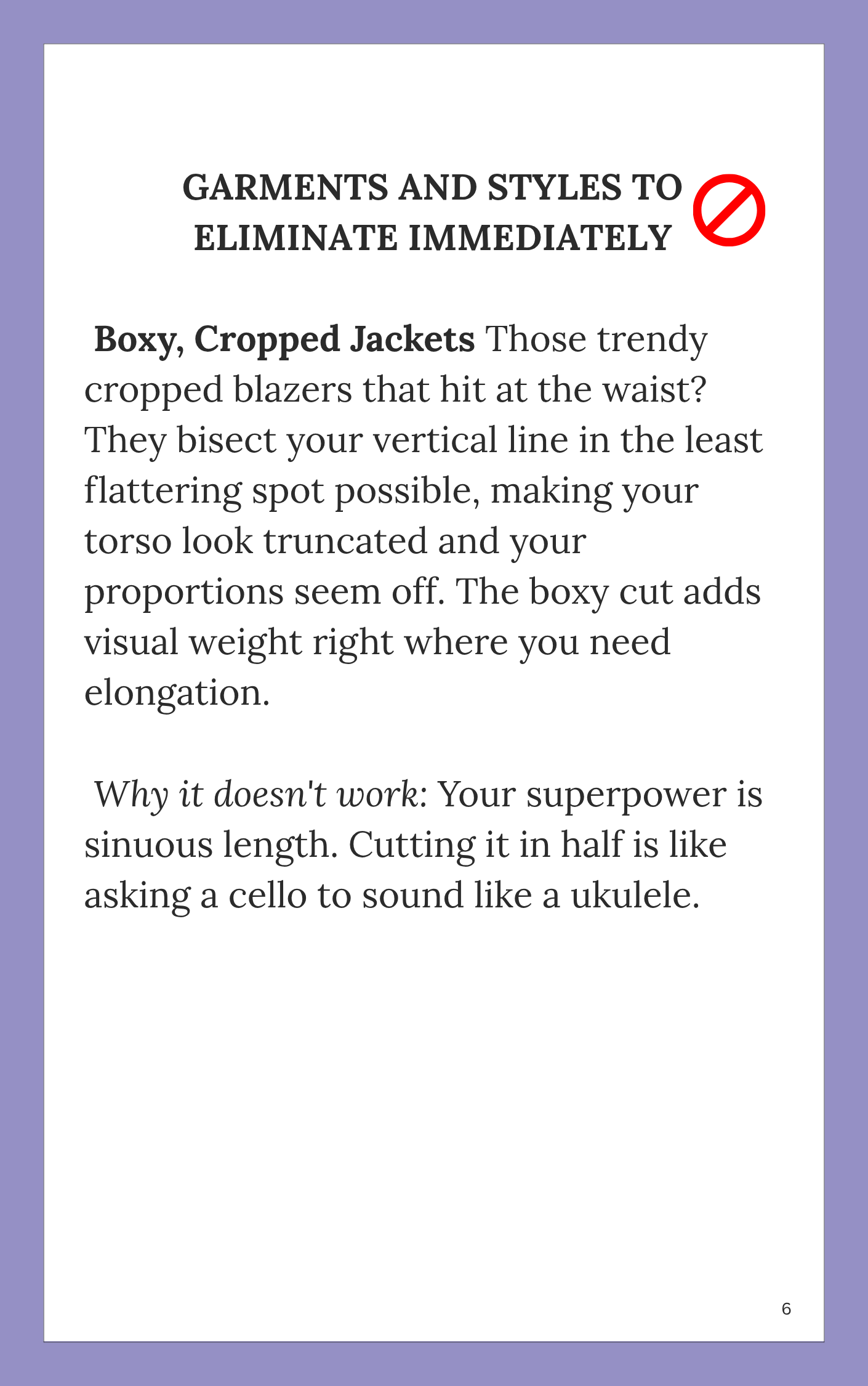 Readers who value refinement over rules. You want to understand why certain shapes and fabrics harmonise with your frame, not memorise another list of dos and don’ts.