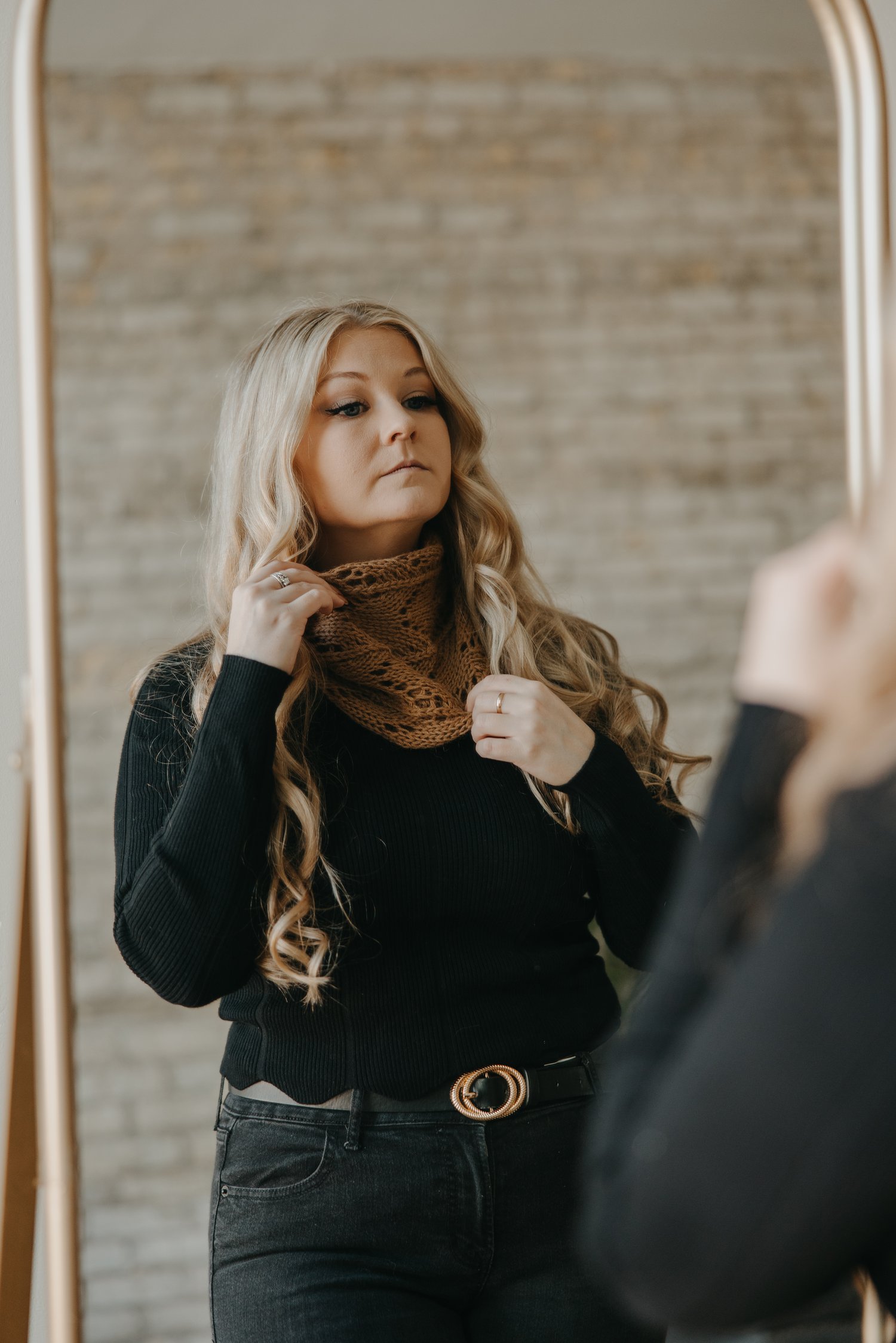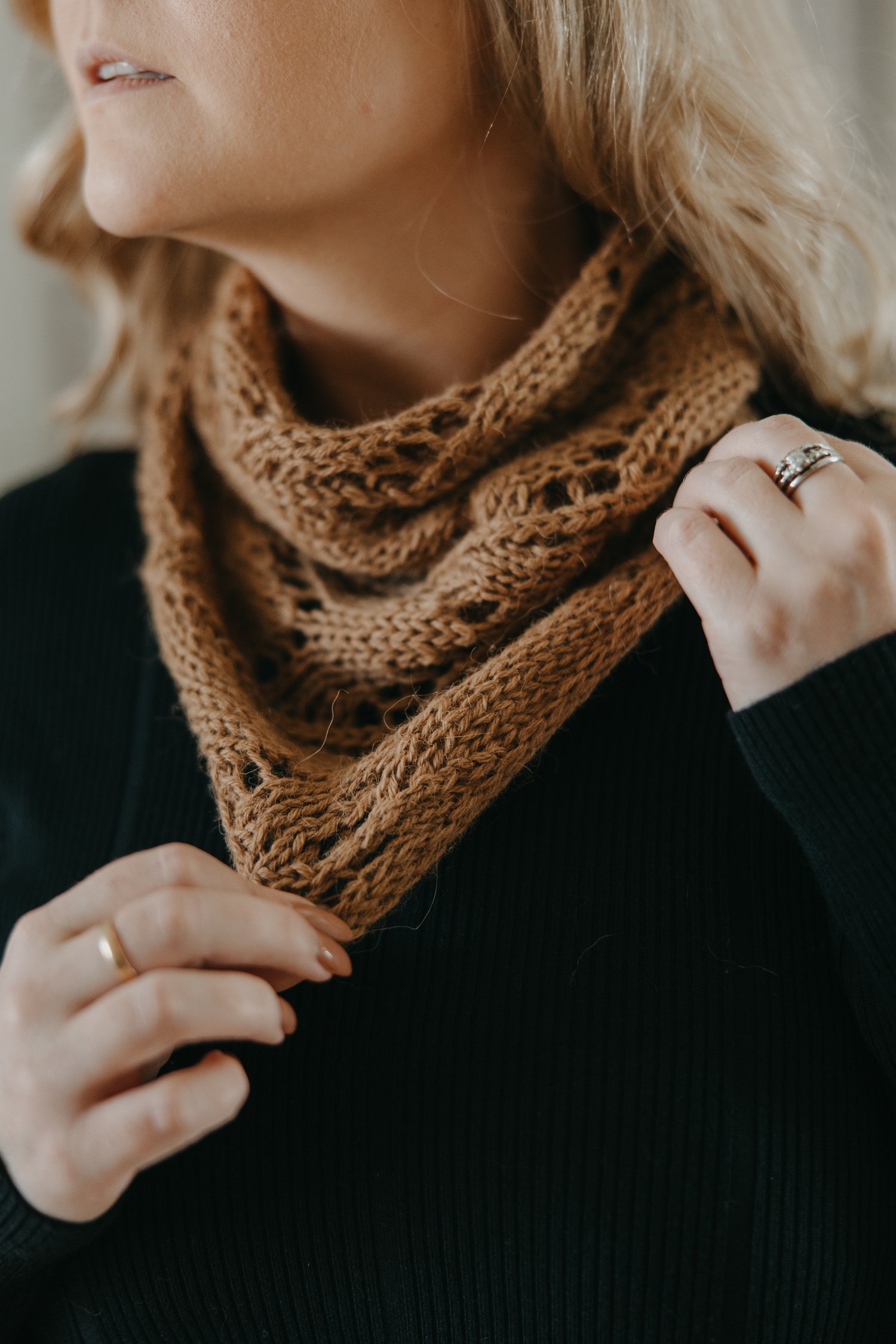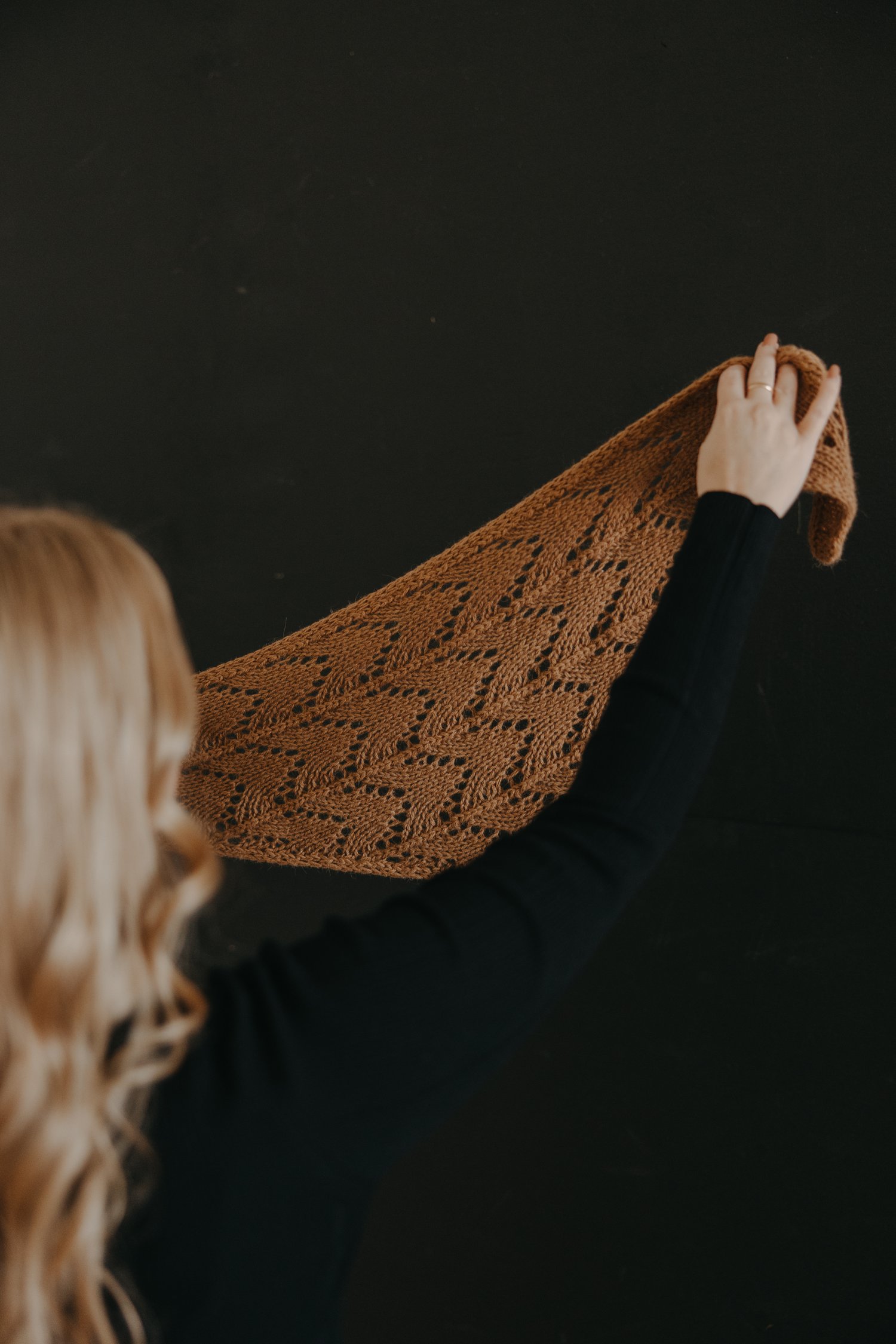 Walnut is a small but mighty lacy scarf, great for keeping your neck warm or tying your hair back!