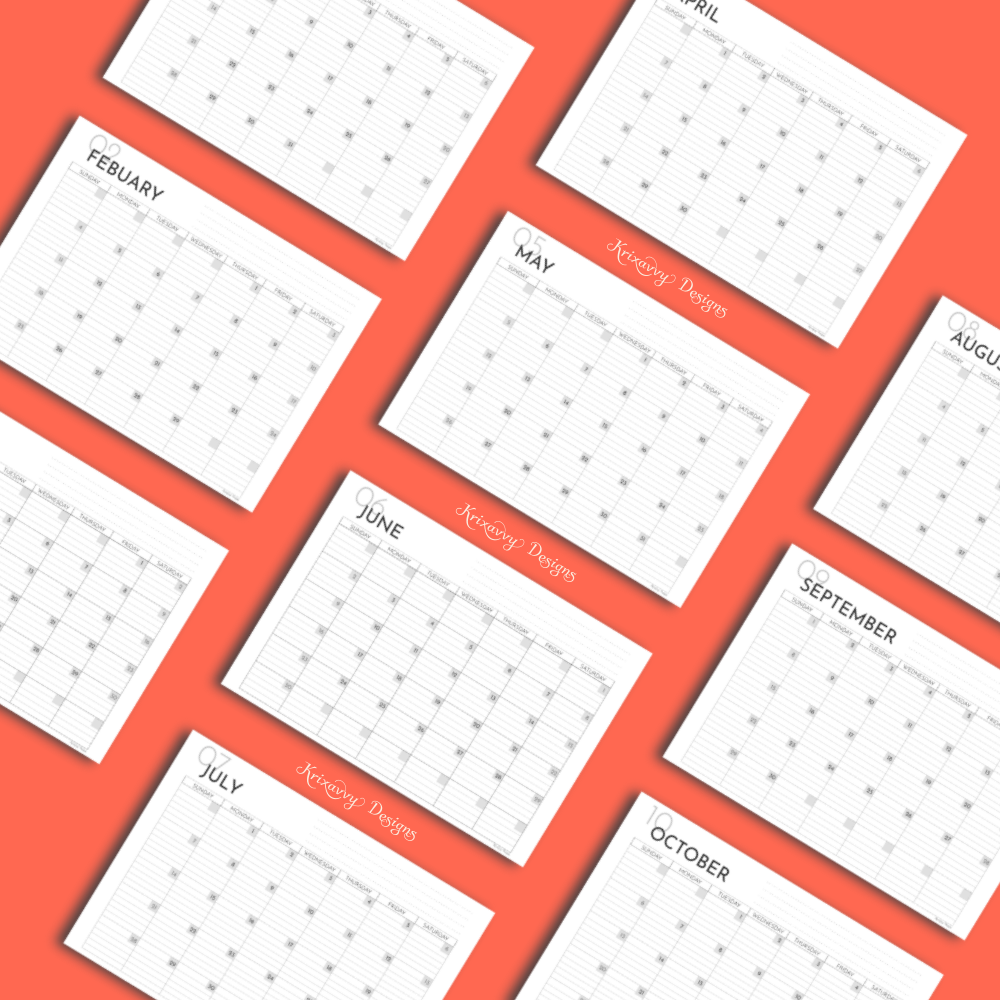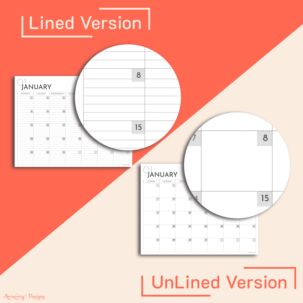 - Choose between Sunday start and Monday start | Lined and Unlined Version.