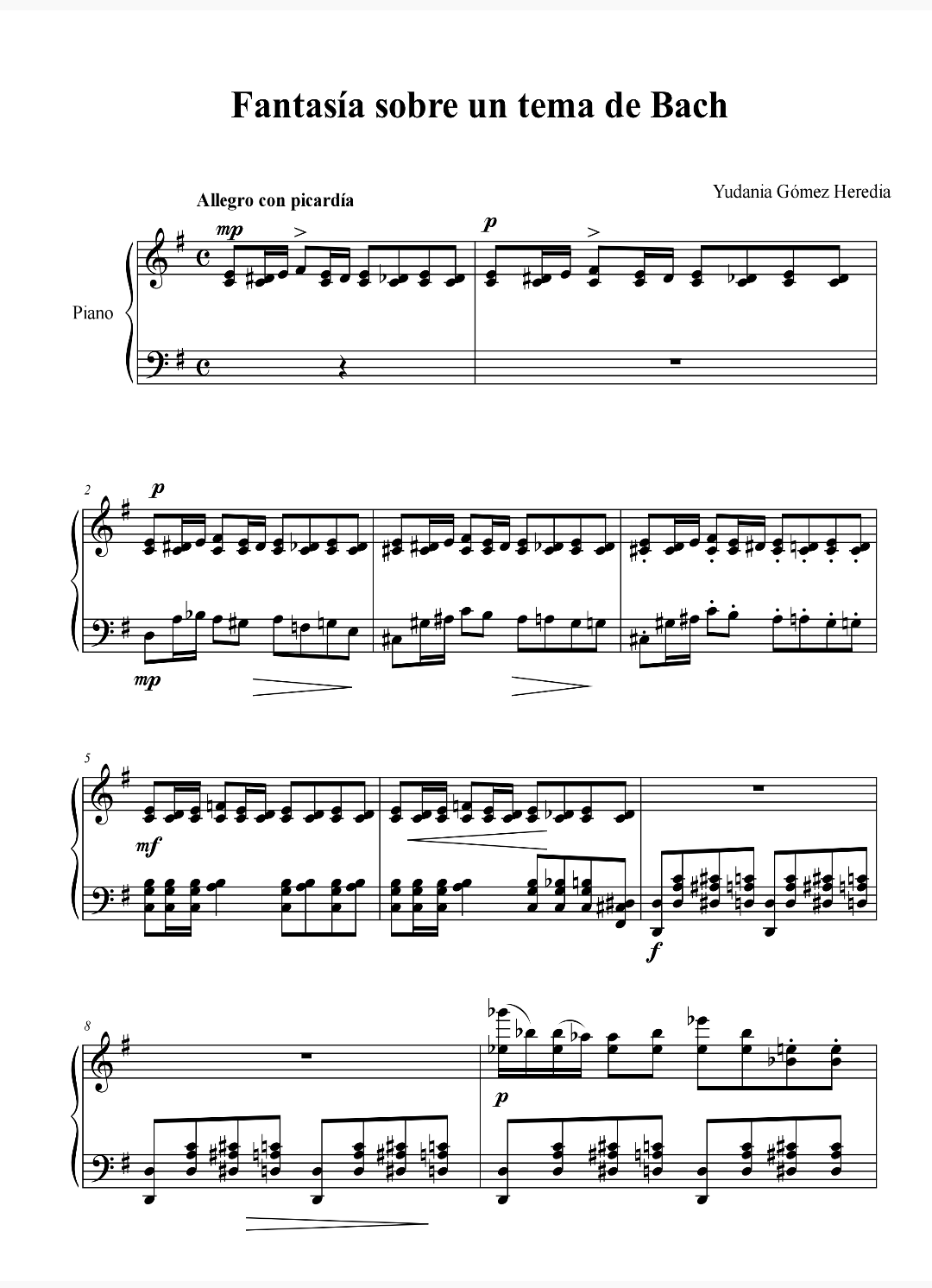 Fantasía sobre un tema de Bach, for piano solo