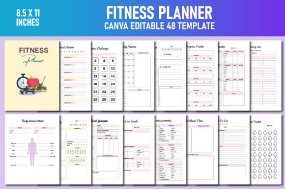 Editable Fitness Planner Canva Template KDP Interiors , You will get high-quality print-ready JPG Files, PNG Files, PDF files. The interior comes in popular sizes, and the files are editable. Editable Canva Link you can Customize it based on your requirement. Ready for home and office or shop use.