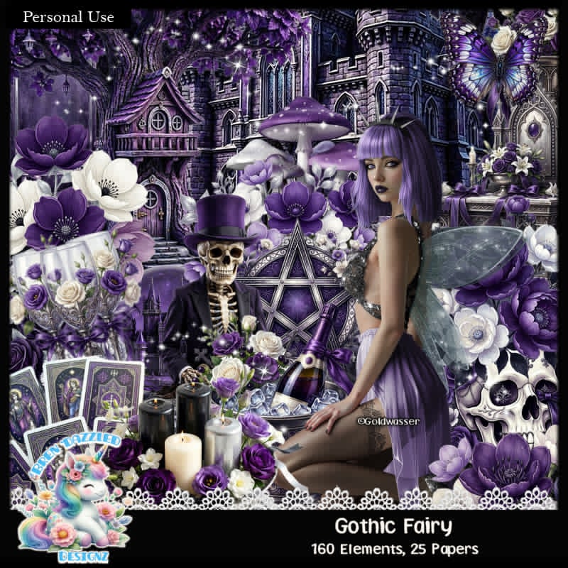 A beautiful gothic beauty kit, This kit includes AI generated items. It has 160 elements and 25 papers. A beautiful tube by Kamilla Goldwasser.