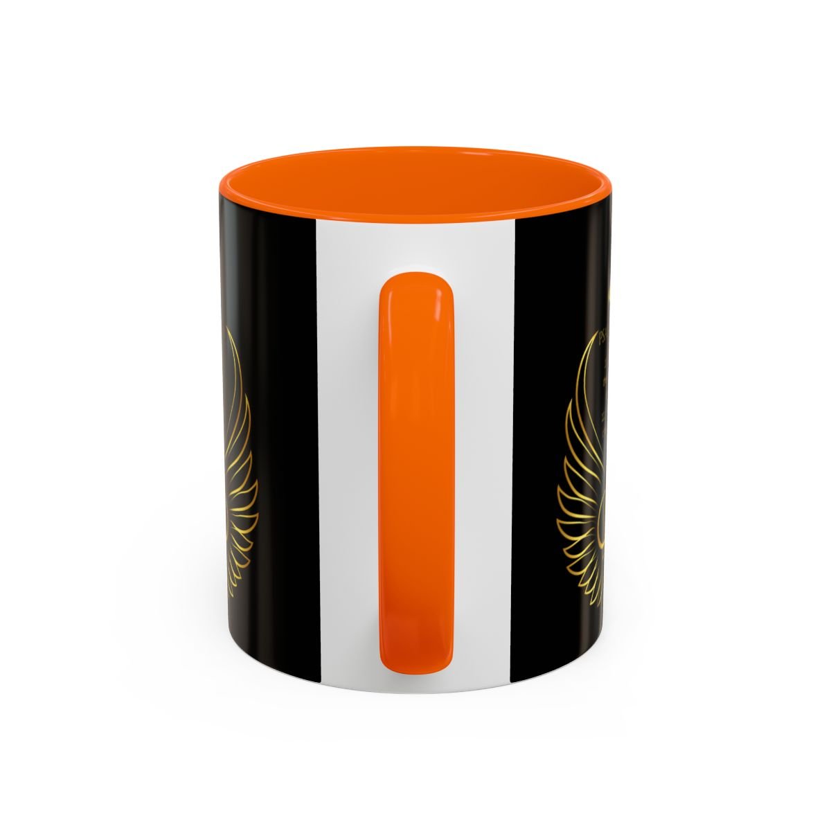 Elevate your faith and style with this luxury professional designed 11oz psalms 91 wing mug. The exterior features a bold black finish that contracts beautifully with the vibrant orange interior, symbolizing light and protection from within.