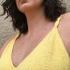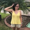Inspired by the little yellow flowers of the wild strawberry plants that grow in my backyard, this top is flutters in the breeze and reminds me of the little yellow flowers blooming on warm, sunny days. These delicate little flowers don’t bear fruit, but they thrive even in horrible conditions, like the shady, acidic clay soil in my backyard. This really hit home with me as I injured my hand last year and was unable to design for most of 2018. Strawberry Blossoms is the first pattern I worked after my injury and the tenacity of those little flowers really resonated with me.