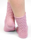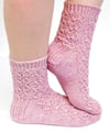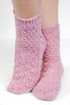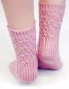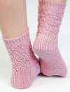Evighet are a pair of fingering-weight toe-up socks with a delicate and timeless stitch pattern that resembles long-forgotten pressed flowers I found between the pages of an old diary. Although faded and wilted, seeing the flowers transported me back in time to the very day I picked them.A stockinette toe gradually transforms into a stitch pattern with tiny buds surrounded by wavy twisted stitch columns. The heel flap is worked in a variation of twisted ribbing, morphing seamlessly into the main stitch pattern and flowing beautifully into a short twisted-rib cuff.