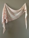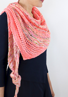 Peach/pink shawl: Primrose Yarn Co. Sophia in Aphrodite and Electric Watermelon