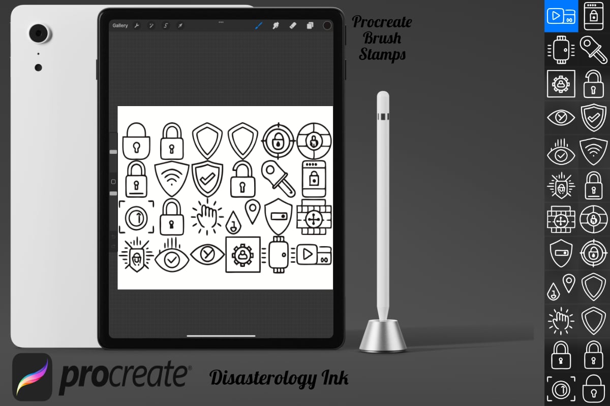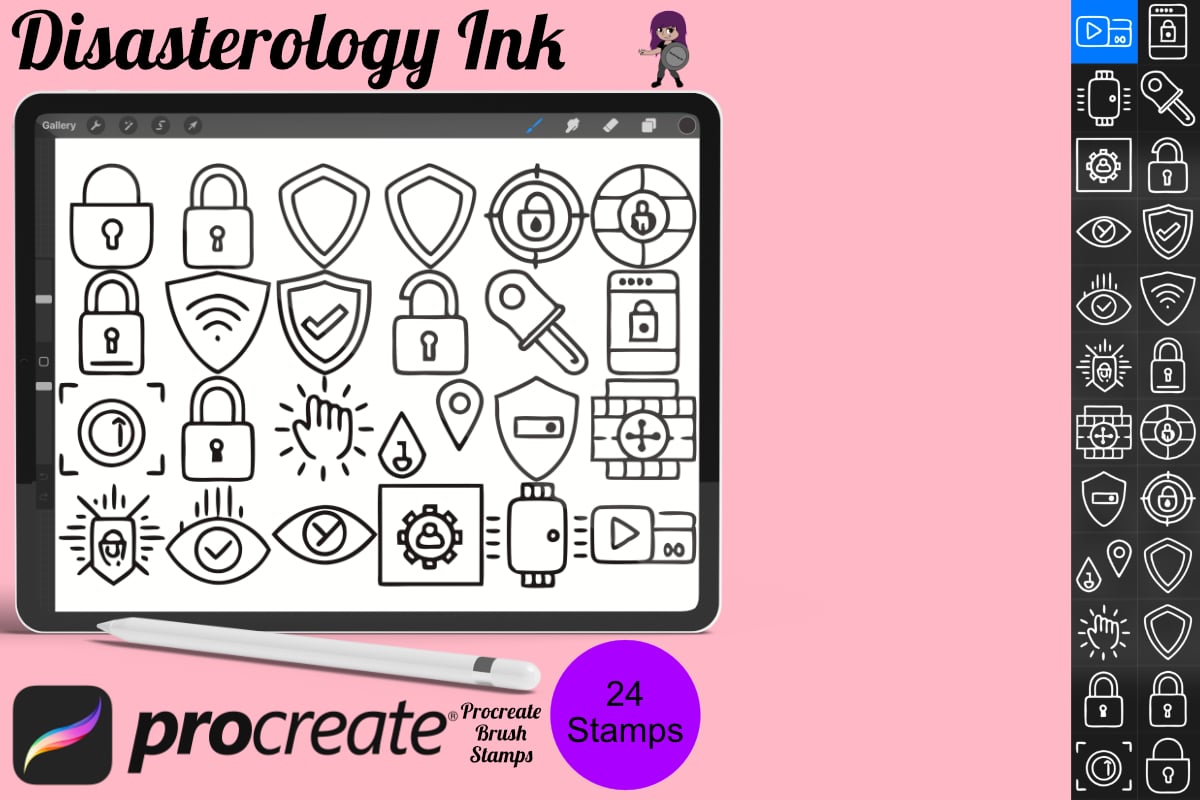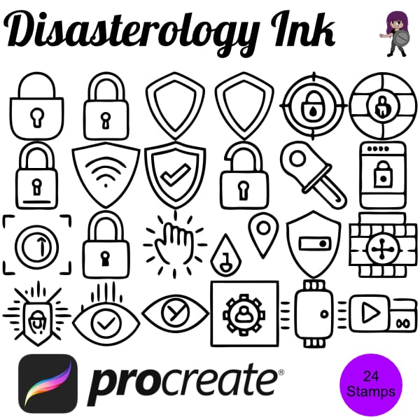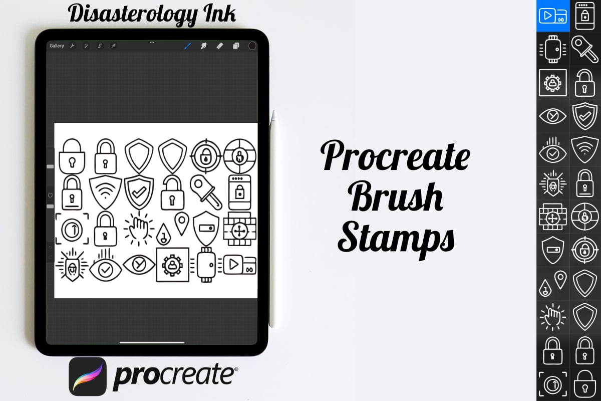 Security Icons Set 1 Procreate Brush Stamps, 24 Icons