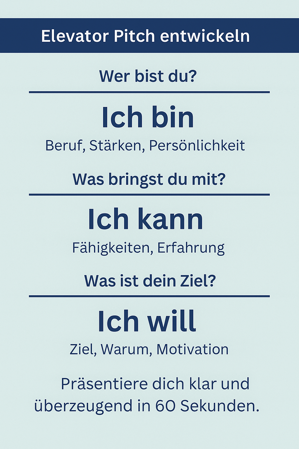 🎯 Für wen: Perfekt für Berufseinsteiger, Quereinsteiger, Selbstständige und alle, die sich klar und überzeugend vorstellen wollen