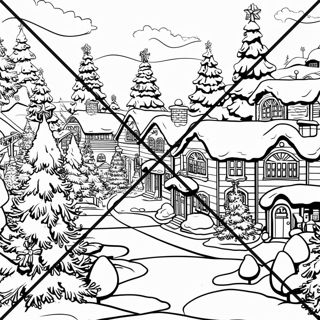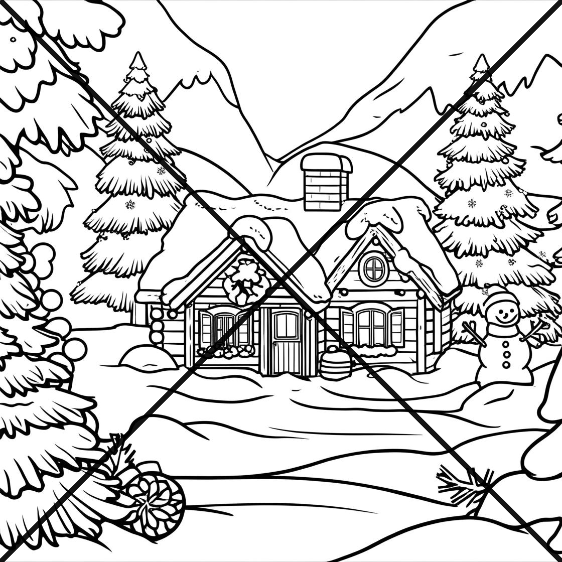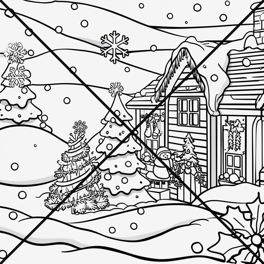 Christmas Snowy Scenes Coloring Book 11 pages print the 11 PDF files in Landscape format.