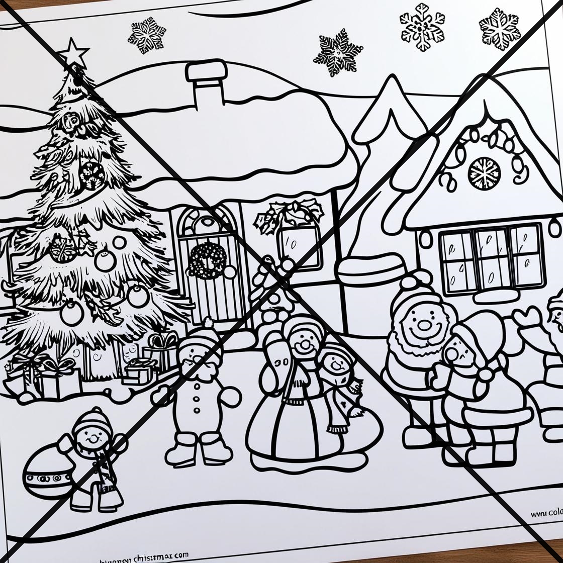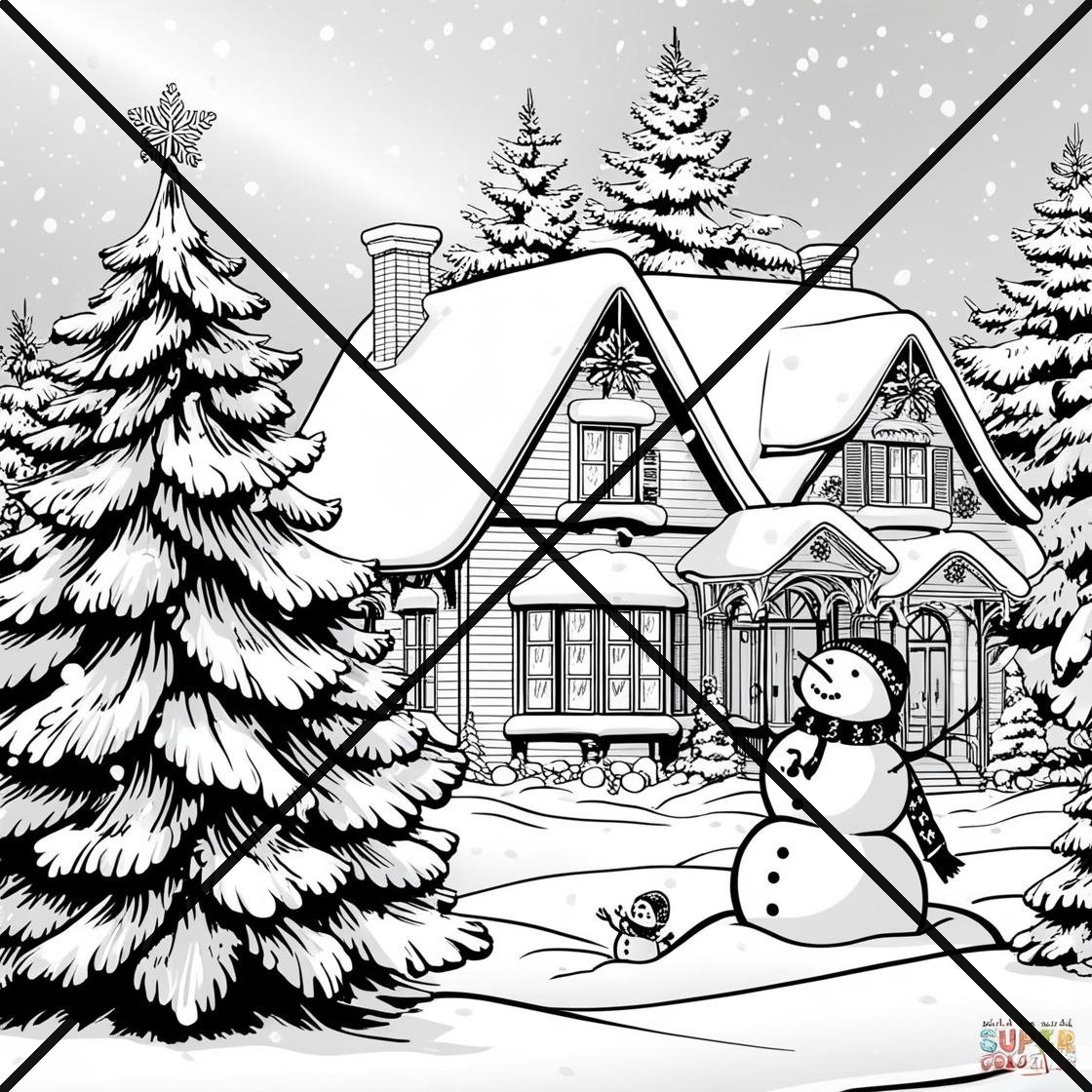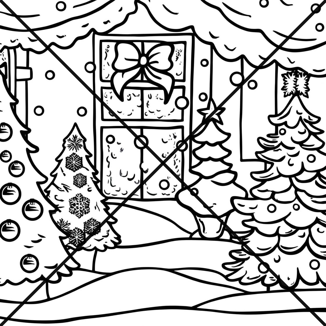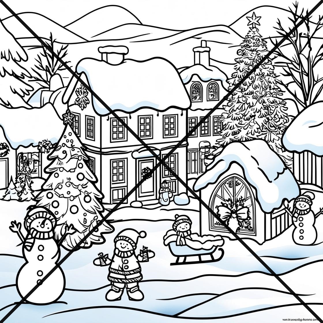 Christmas Snowy Scenes Coloring Book 11 pages print the 11 PDF files in Landscape format.