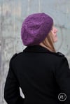 This beret uses simple twists and cables with a combination of decrease techniques to create the stunning design, that appears like lightening travelling towards the centre of the Hat.