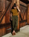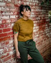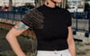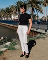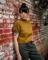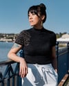 THI is a cropped, mock-neck tee with modern striped detailing on the right shoulder. Worn fitted to the body or relaxed and boxy, Thi connotes an elegant air of grace and sophistication.