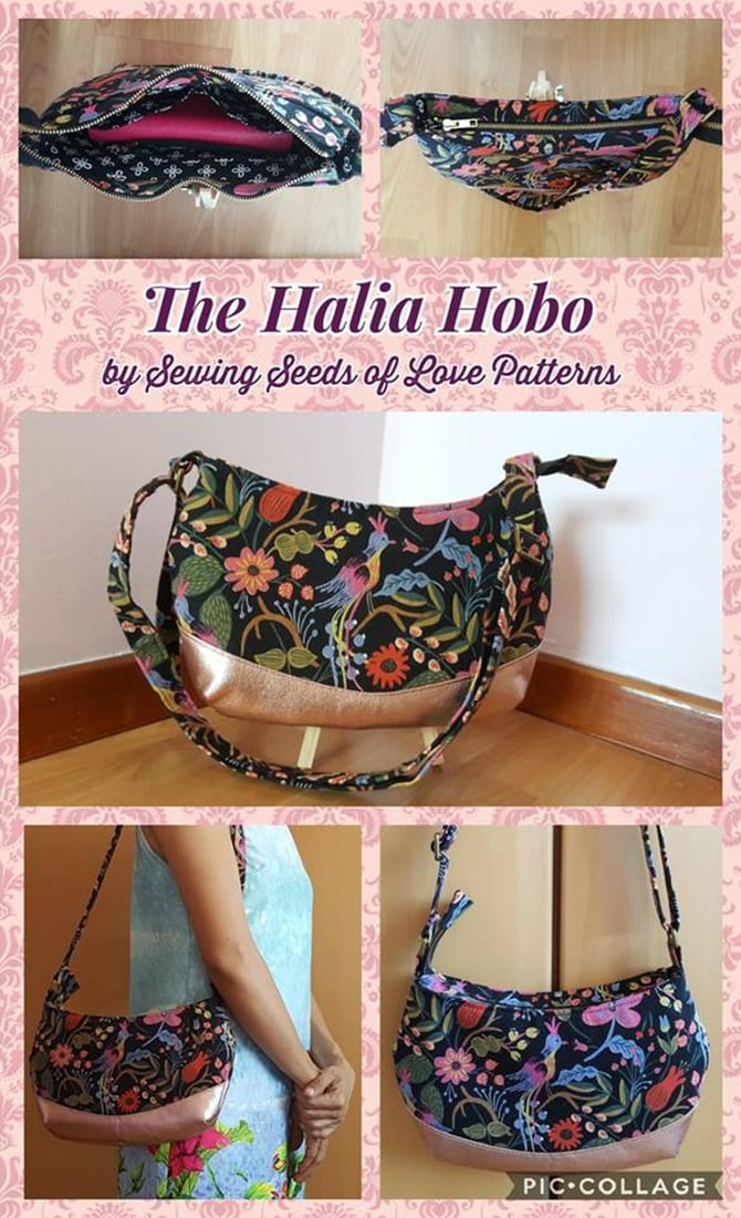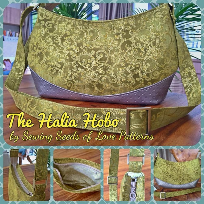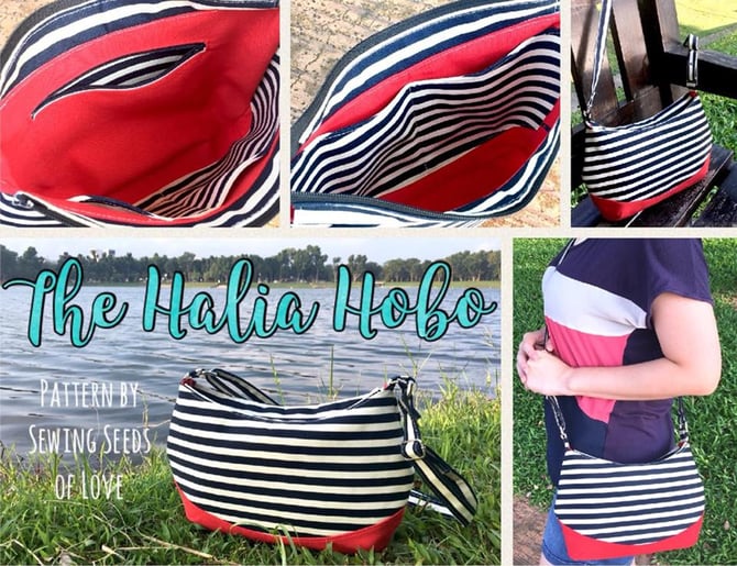 The Halia Hobo is a feminine hobo-style bag that is versatile and lightweight. This bag offers two alternatives as main closure: (i)a magnetic snap closure, or (ii)a zippered panel closure.
