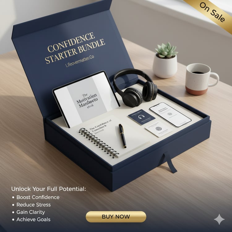 The Reset & Rise Bundle™ is a 48-hour-only collection of audio and printable tools designed to calm your nervous system, rebuild your confidence, and reignite your motivation — without burnout.