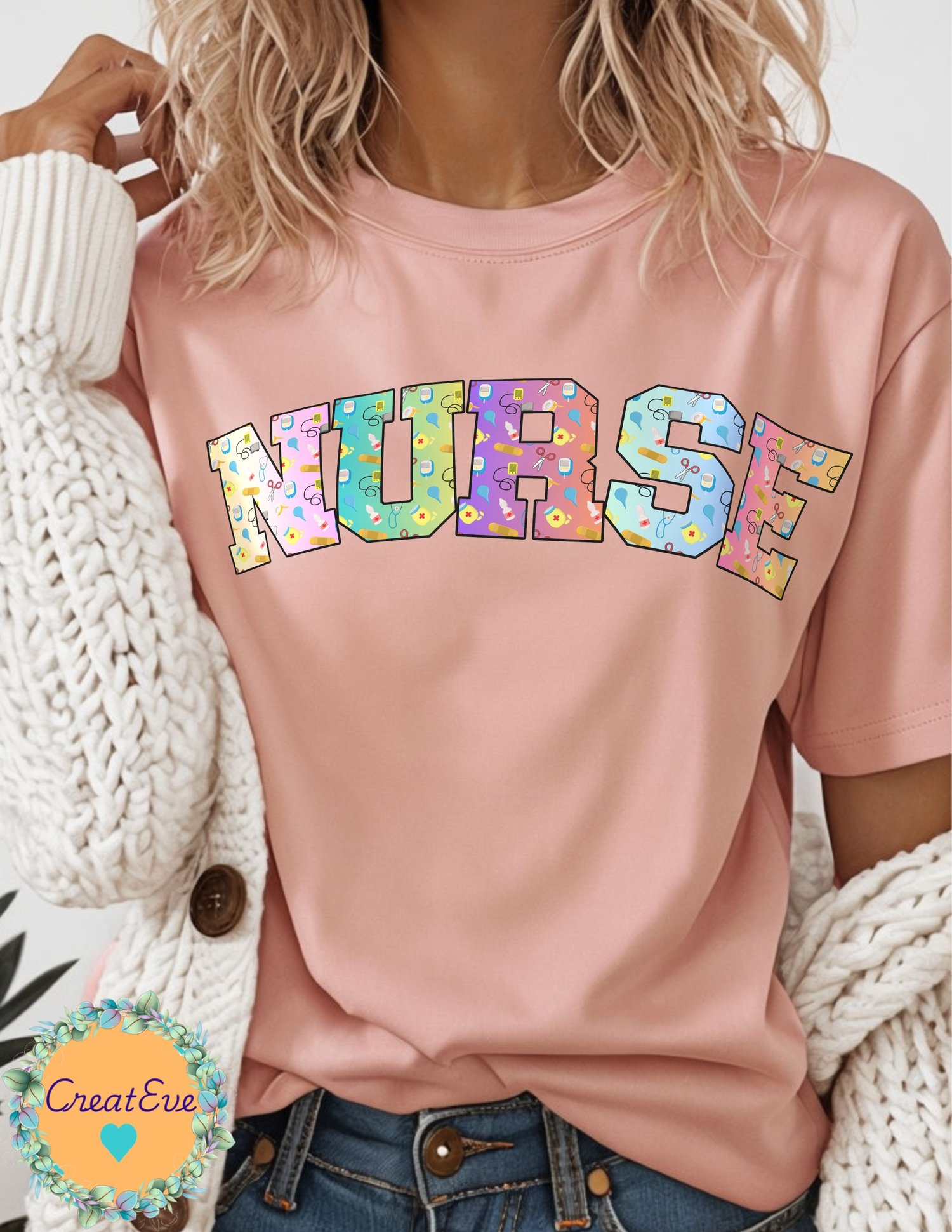 Nurse in Varsity Lettering T-shirt PNG 12" x 12", 300dpi, 2 png Bundle