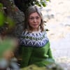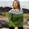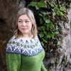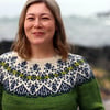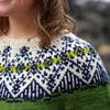 Treeline features a colourwork motif of foliage, bursts of flowers and a mountain range.