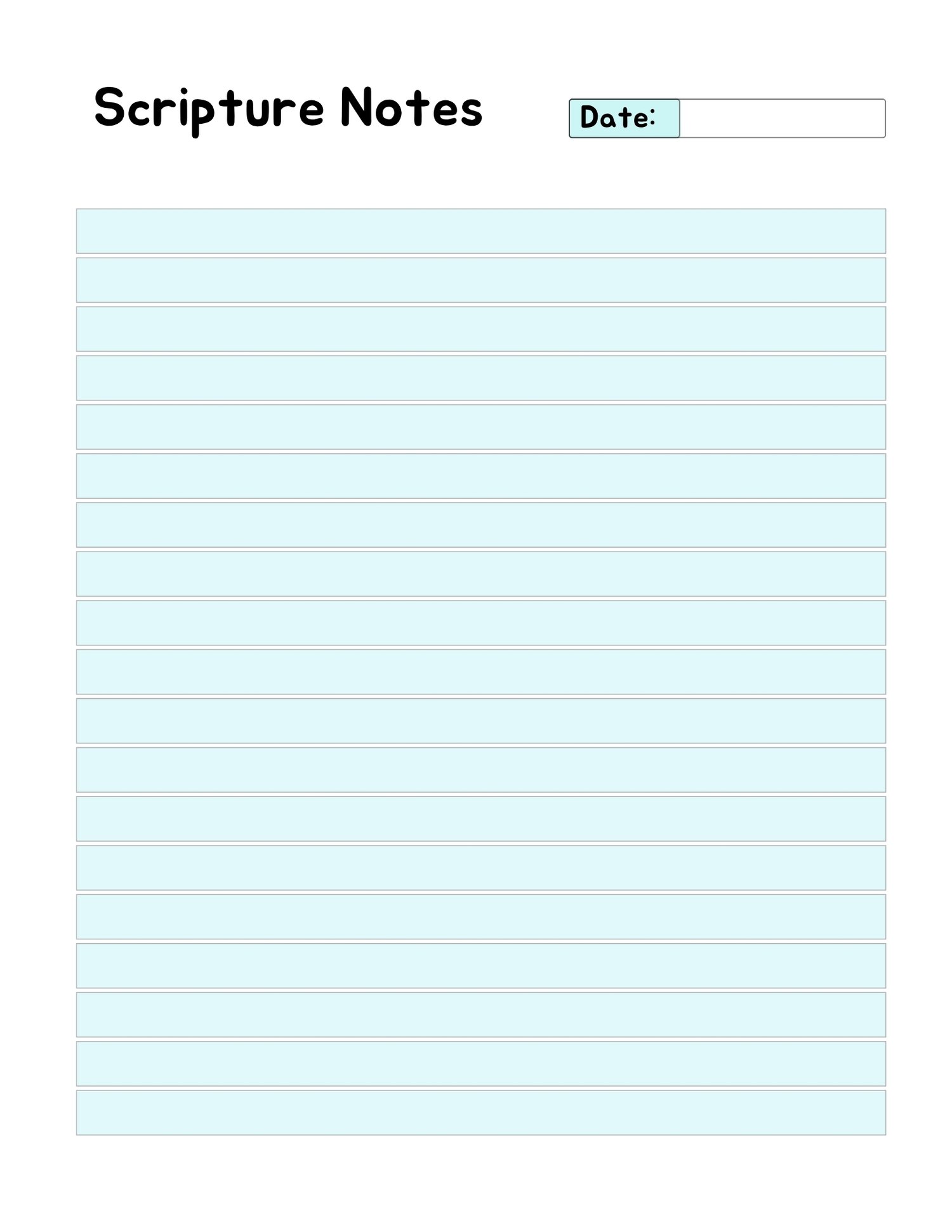 📖 Bible Study Worksheets – Structured pages for notes, key verses, and application
