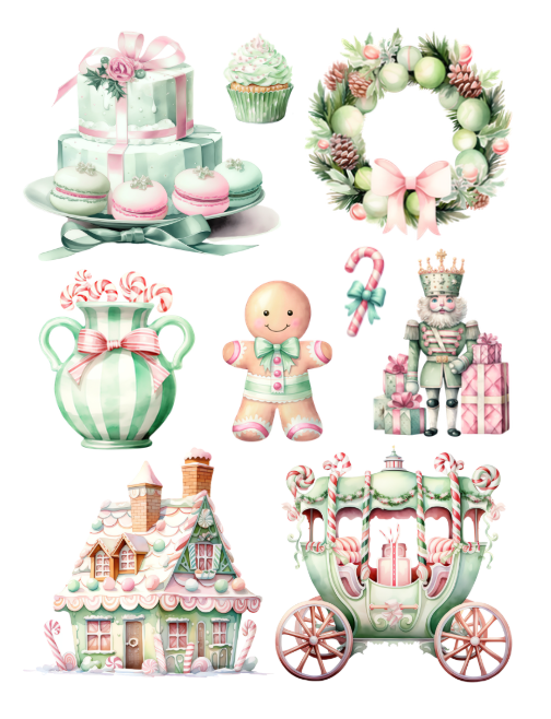 Pull out your scissors and glue and dive into the magical world of pastel Christmas ephemera with this artistically beautiful cut and collage book. Cookies, elves, fairies, stockings, bells, candles, carriages, flowers, animals, holiday fare, Christmas trees, angels, teddy bears, candy, presents, cakes, Santa Claus, snowflake, cupcakes, bows, birds, reindeer, romantic couples, sweaters, candy canes, gingerbread men, bunny rabbit, ornaments, mittens, cozy furniture, mugs of warm coffee and more are featured.