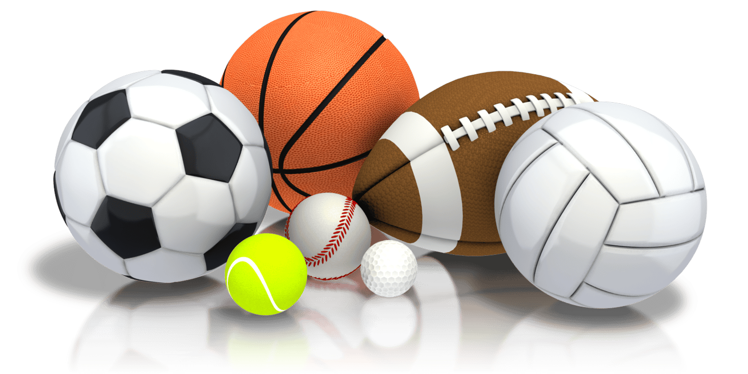 An image of sports equipment grouped together.