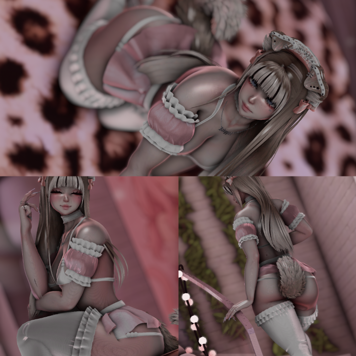 Tube top, PJ top, Maid Outfit, Dino Onesie, Robe, Dress, PJ pants, Uggs, ECT.. (hue shifts)