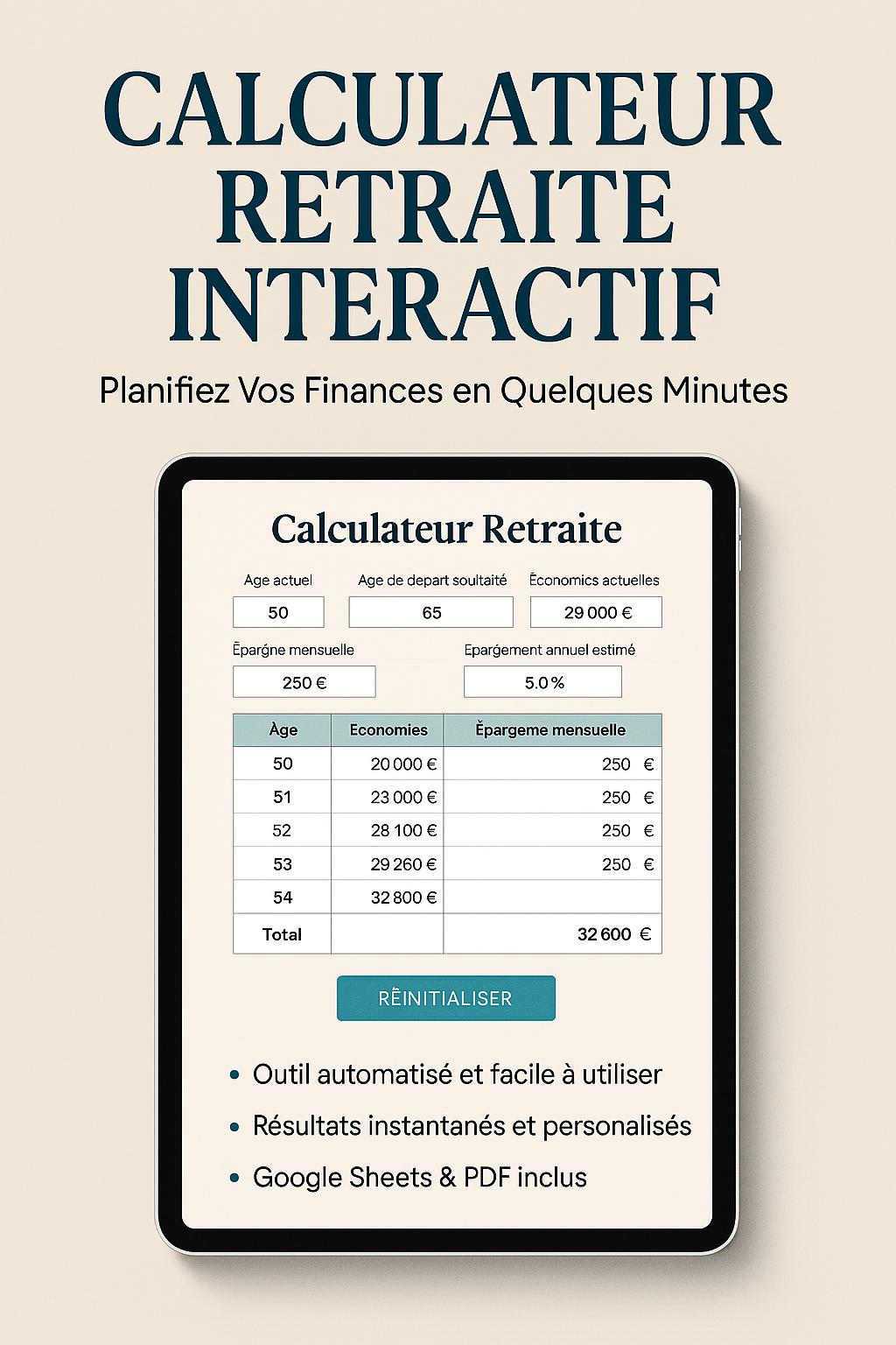 Téléchargez votre calculateur retraite et obtenez une vision claire, simple et personnalisée de votre situation financière.