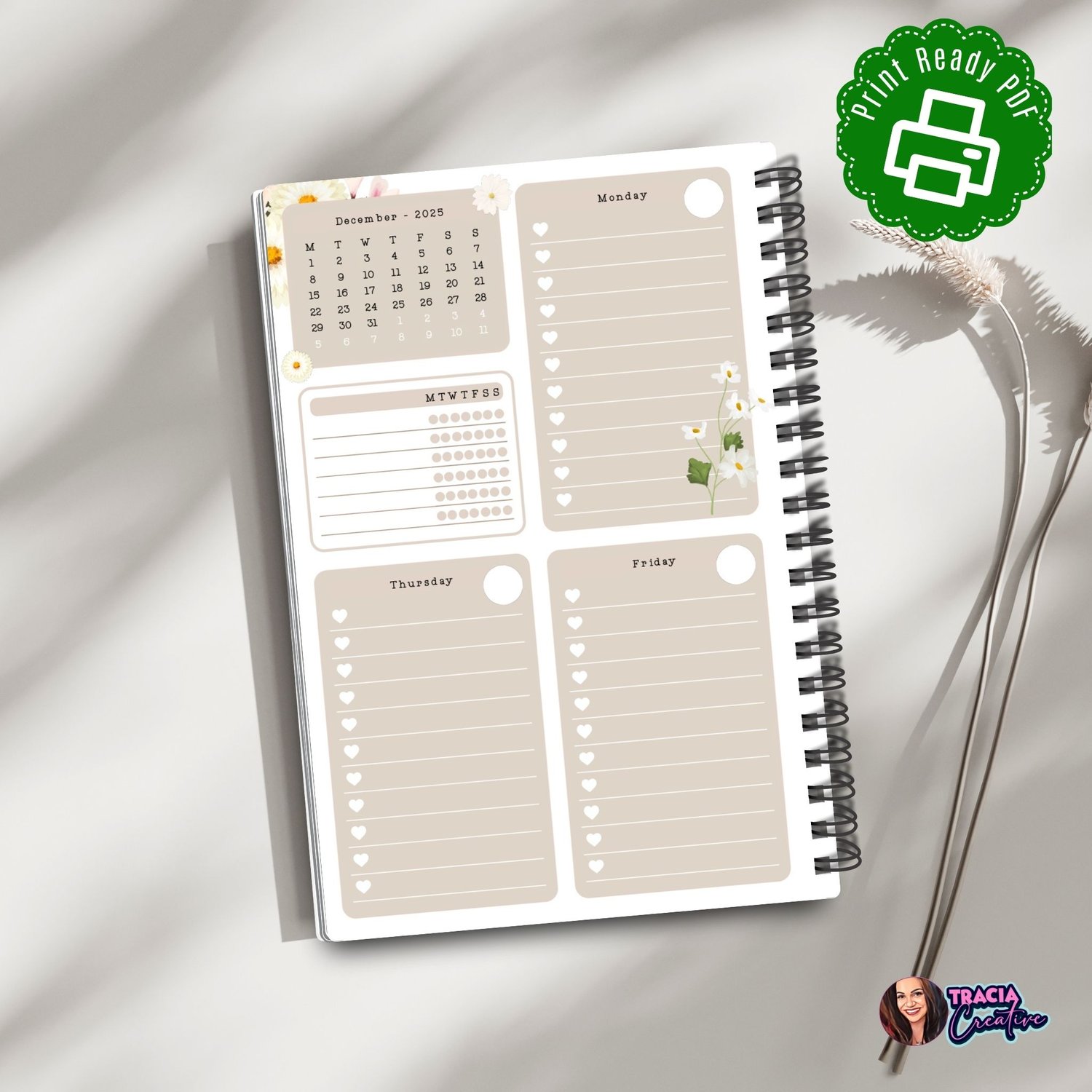 Stay organized in 2025 with our Meadow-Themed Weekly Planner. Perfect for planning your year, week by week. Download now and start planning!
