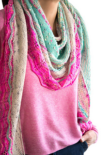 I often use “Fabulosity” to describe the state of something “over the top wonderful” which is how I feel about this large, drapey shawl. It’s so fun to wear! Designed as a collaboration with Emma’s Yarn for my annual visit to Four Purls Yarn Shop in Winter Haven, Florida, there are slipped stitches, “made up” decorative increases, dots, mosaic, a dragon scale stitch and a statement border. All of this gives you nothing short of a statement piece of fabulosity!