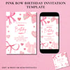 Coquette Pink Bow Birthday Invitation | Editable Canva Template | Girl Birthday Party Invite | Digital Download
