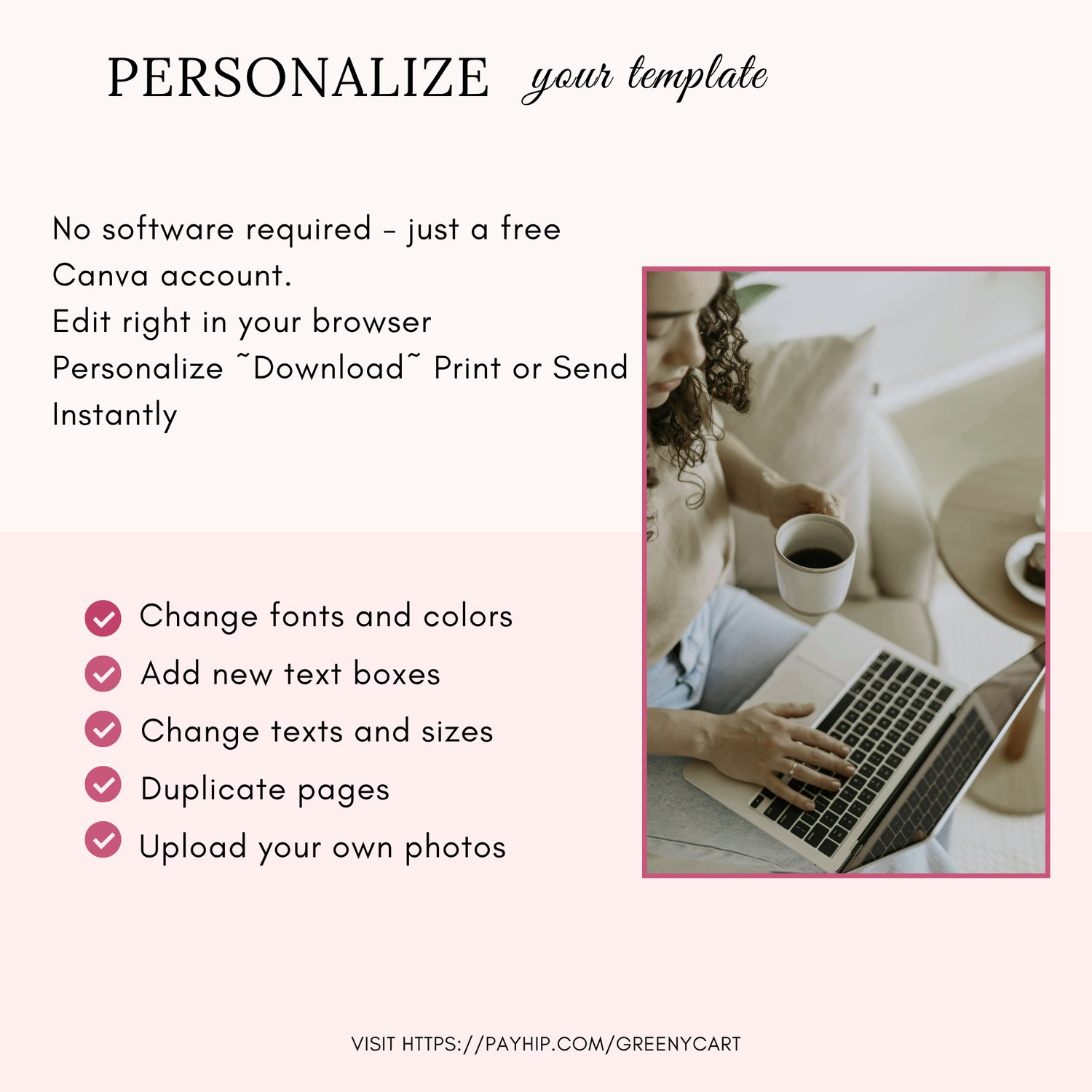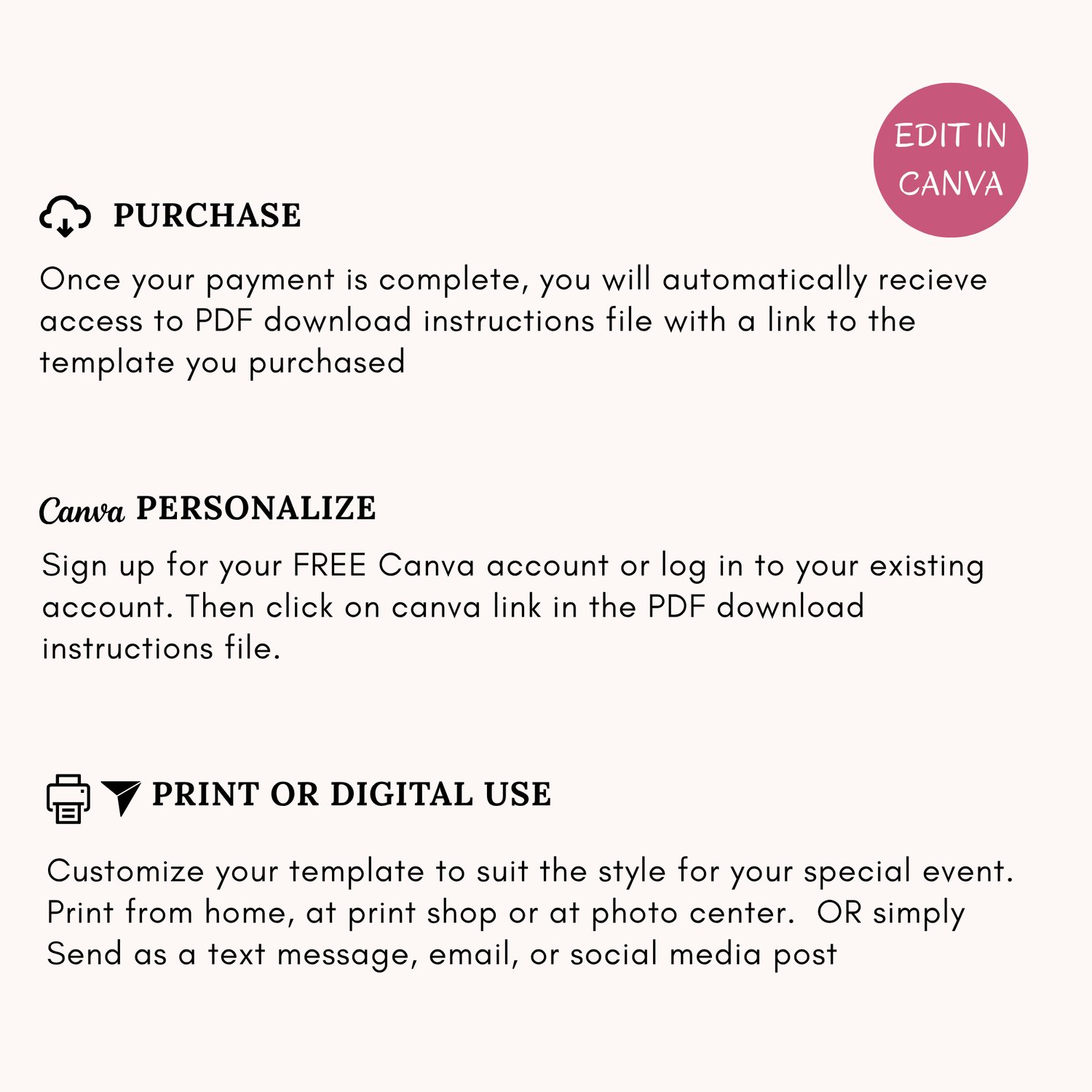 - Edit in minutes on your phone or computer (super easy Canva template)