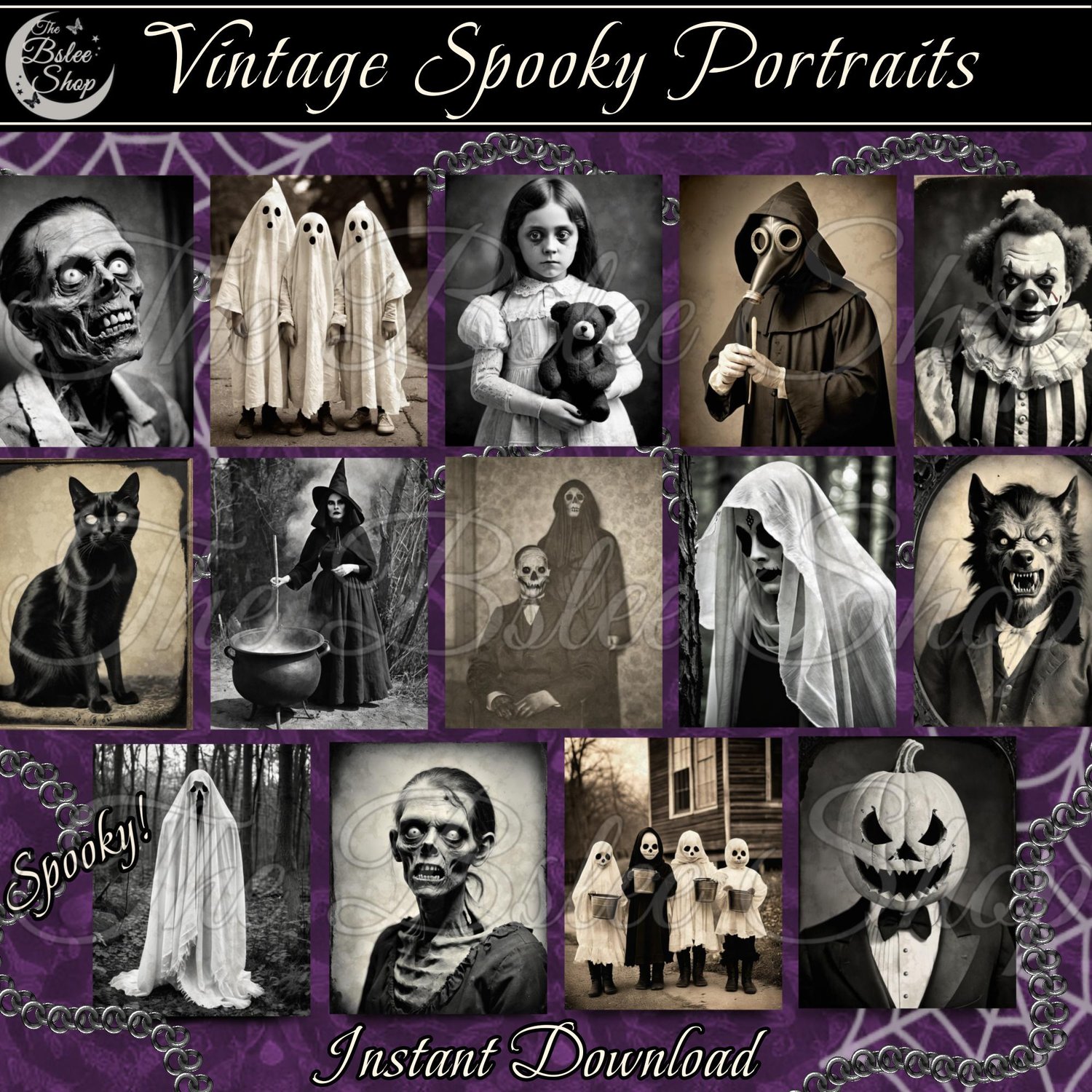 This is a set of 14 creepy portraits! You can use them for your scrapbooking projects, dollhouse, card making, gifting, collage and other crafts! You can scale down the document if required. Save time by instantly downloading and printing the items, there is no shipping cost.