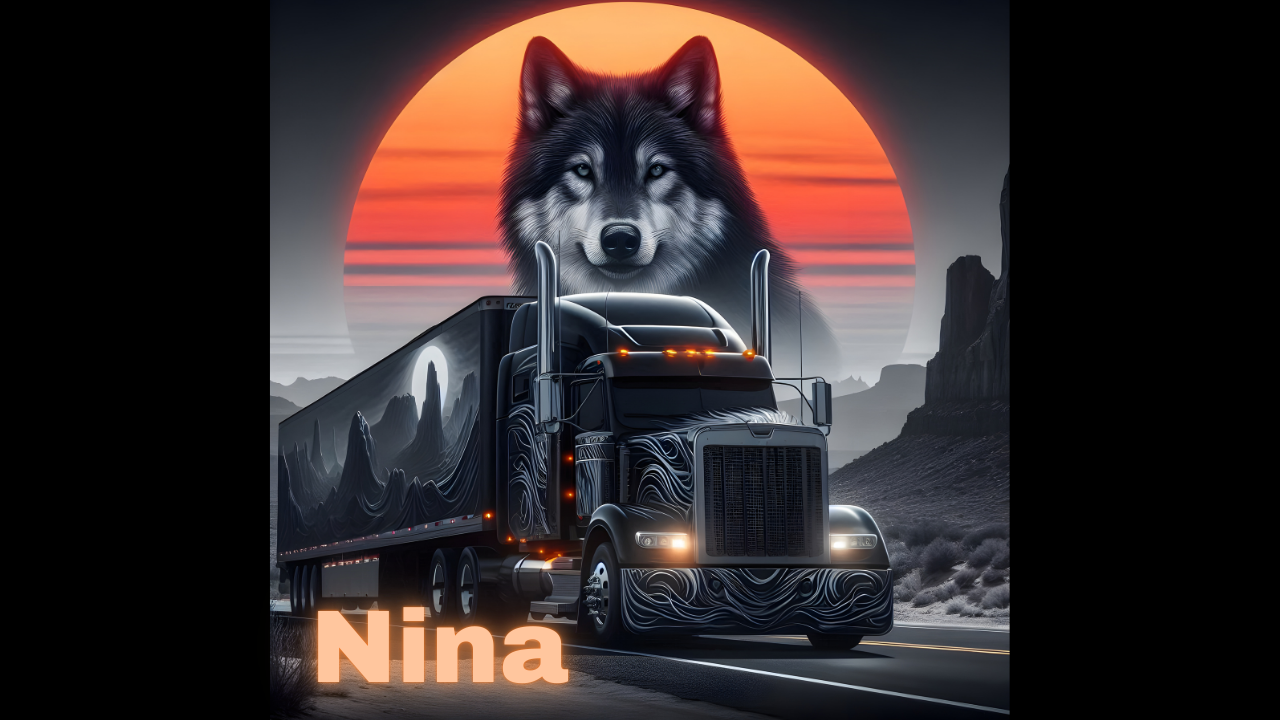 Truck,highway,mountains,wolf...Ai generated image.