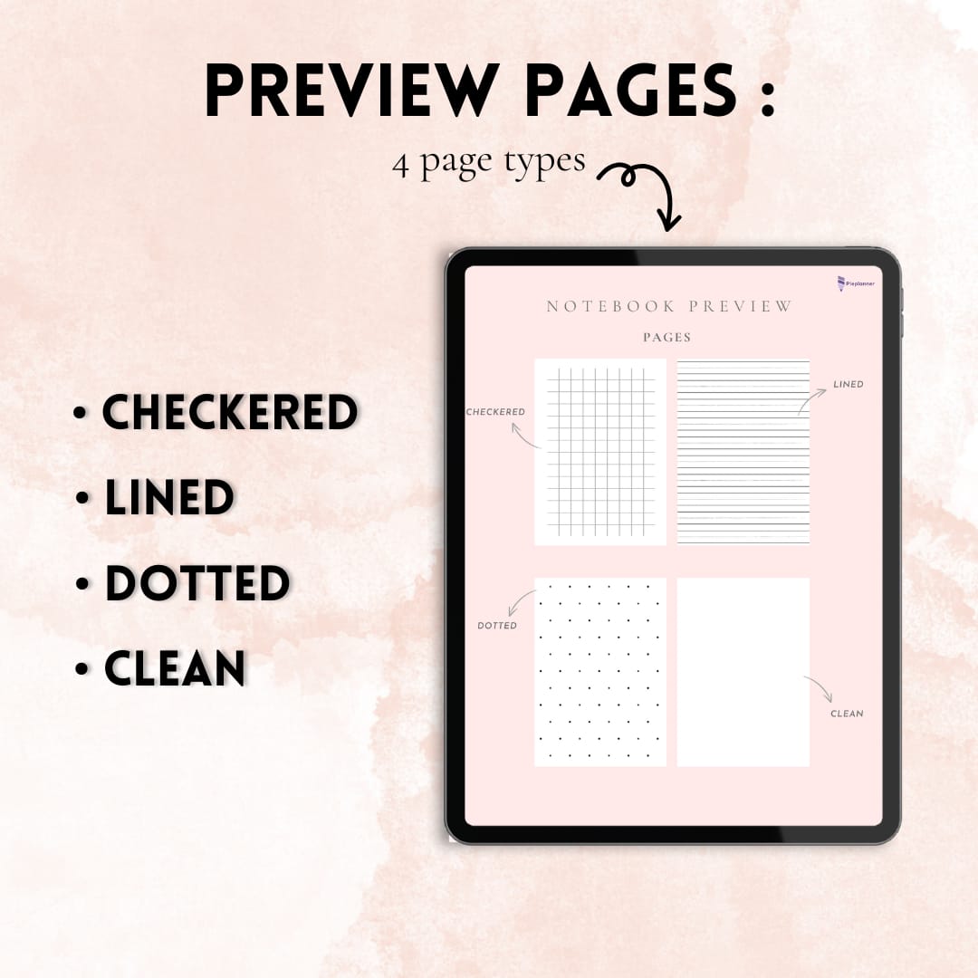 - 4 unique versions: Checkered, Lined, Dotted, and Clean