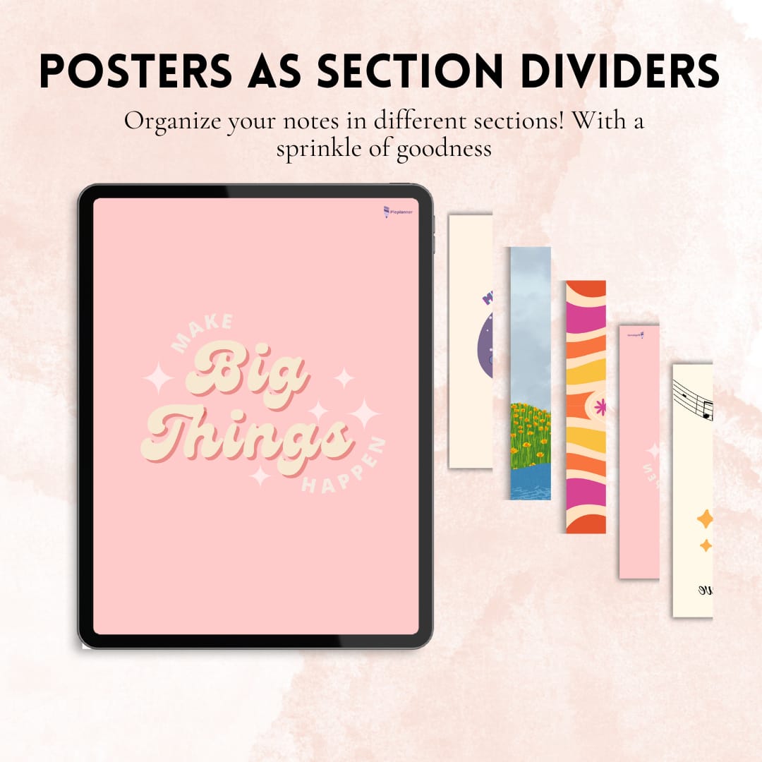 Beautiful moodboards serve as section dividers, adding a touch of visual inspiration to your notebook. These stunning graphics will help you stay motivated and focused on your goals.