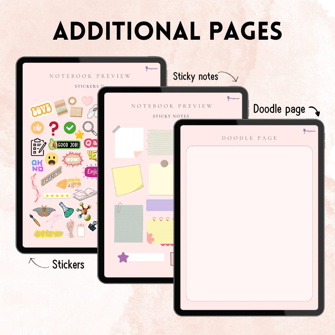 - 2 doodle pages, 1 sticker page, and 1 sticky notes page for creative freedom