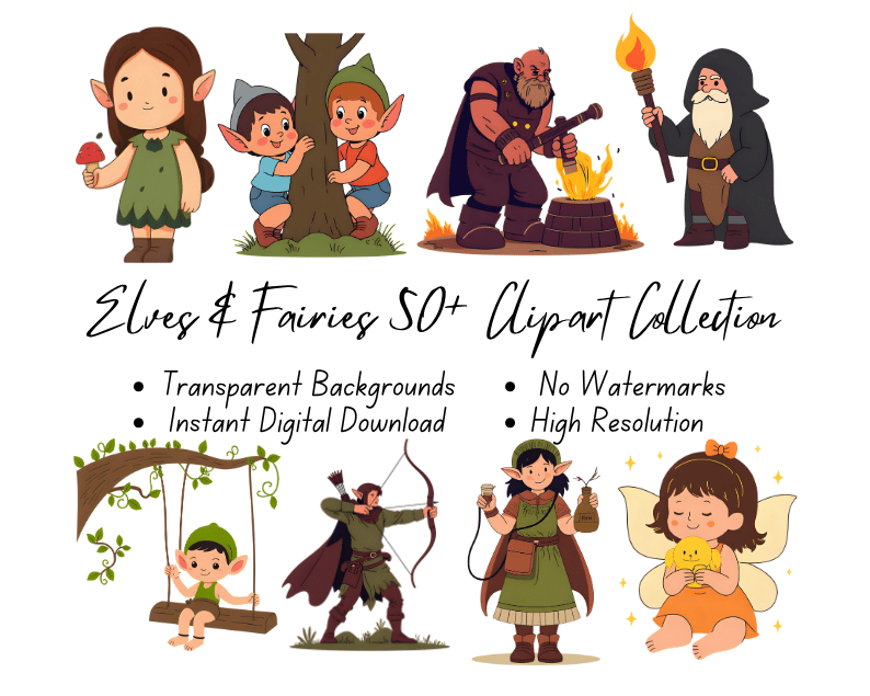 Elves & Fairies 50+ Clipart Collection | High-Resolution Digital Printables | Instant Download | No Watermark