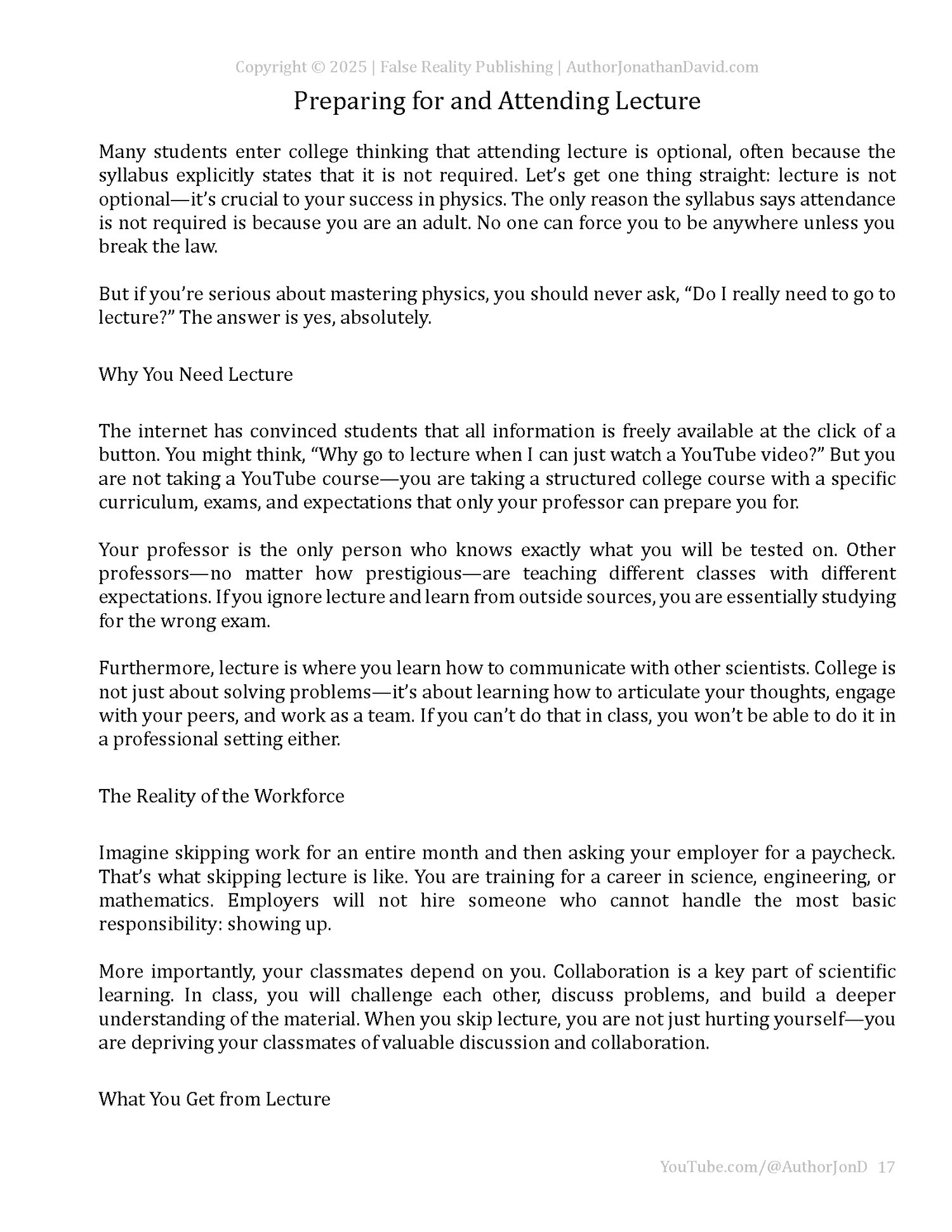 Physics does not begin on the first day of class.