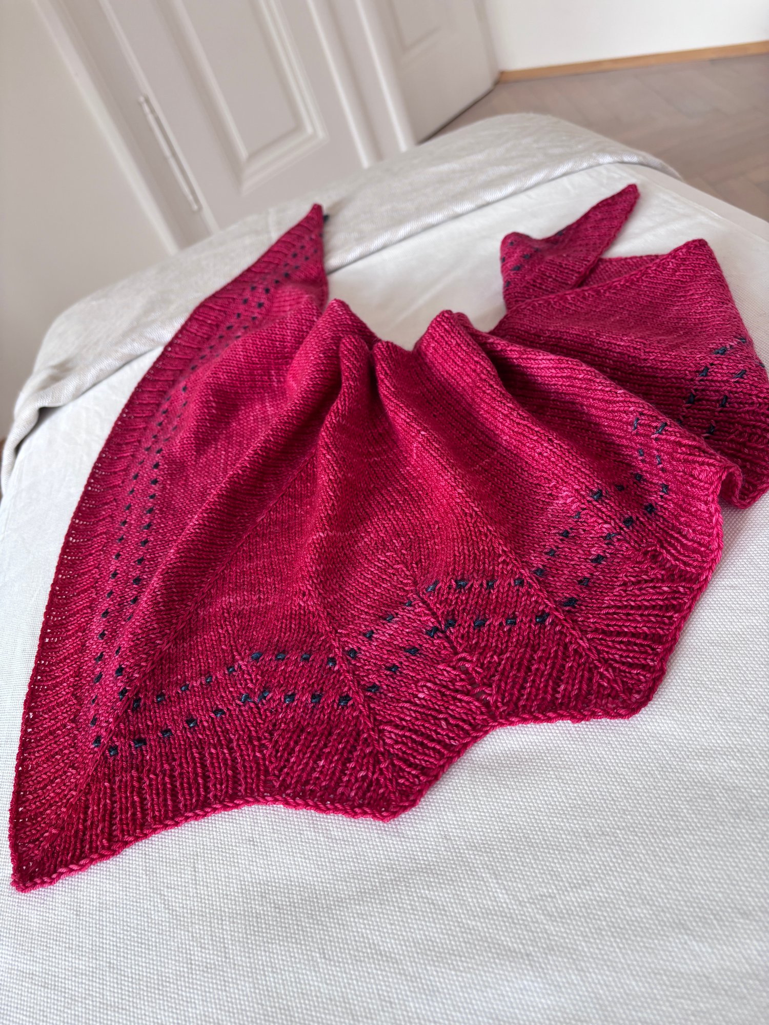 not just a simple triangle shawl … the clou: the buttonhole to hod the shawl in position