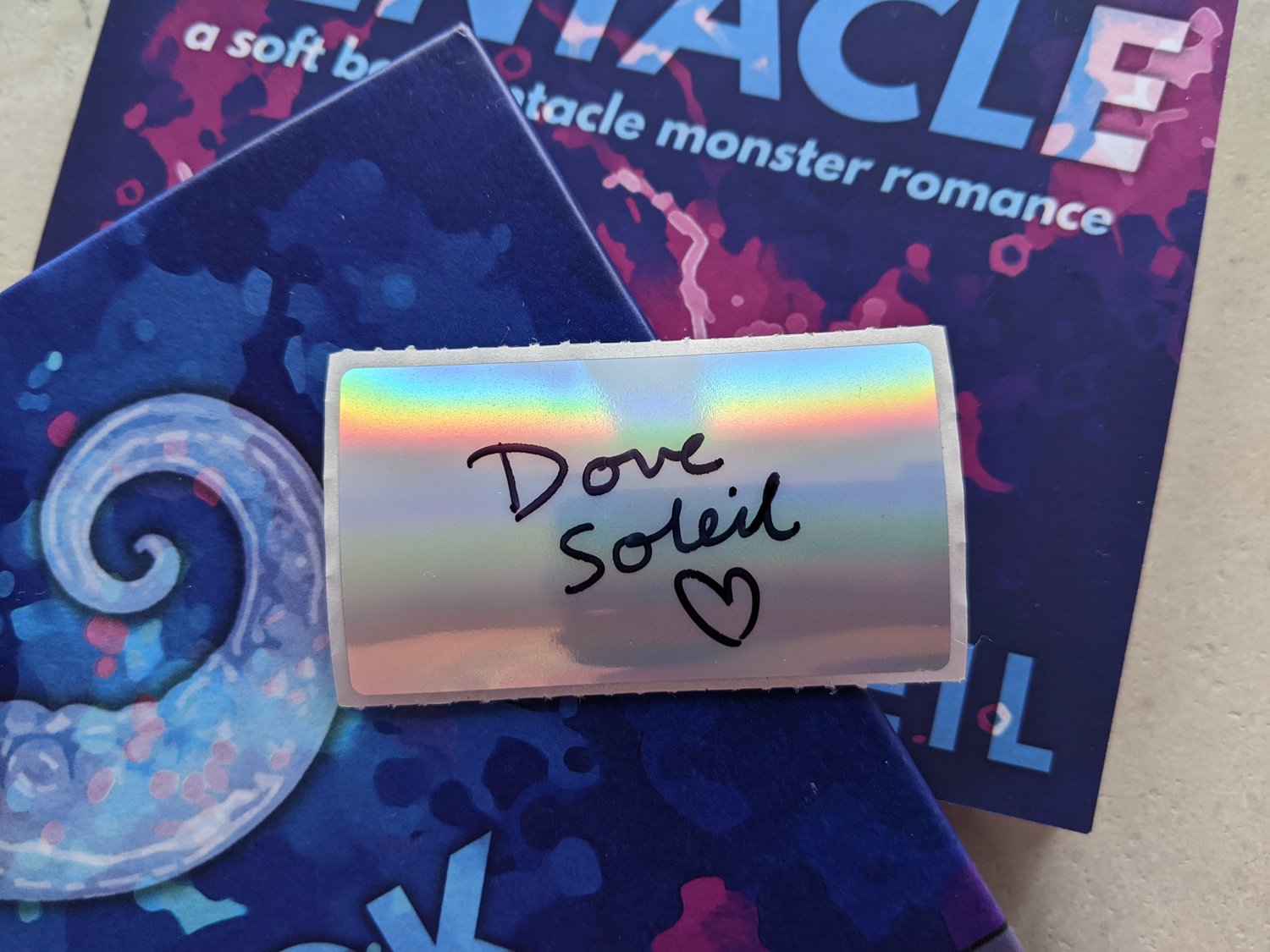 A signed Dove Soleil bookplate. This is the best option if you're international and don't want to pay through the nose for me to ship you an actual book from the UK, haha.