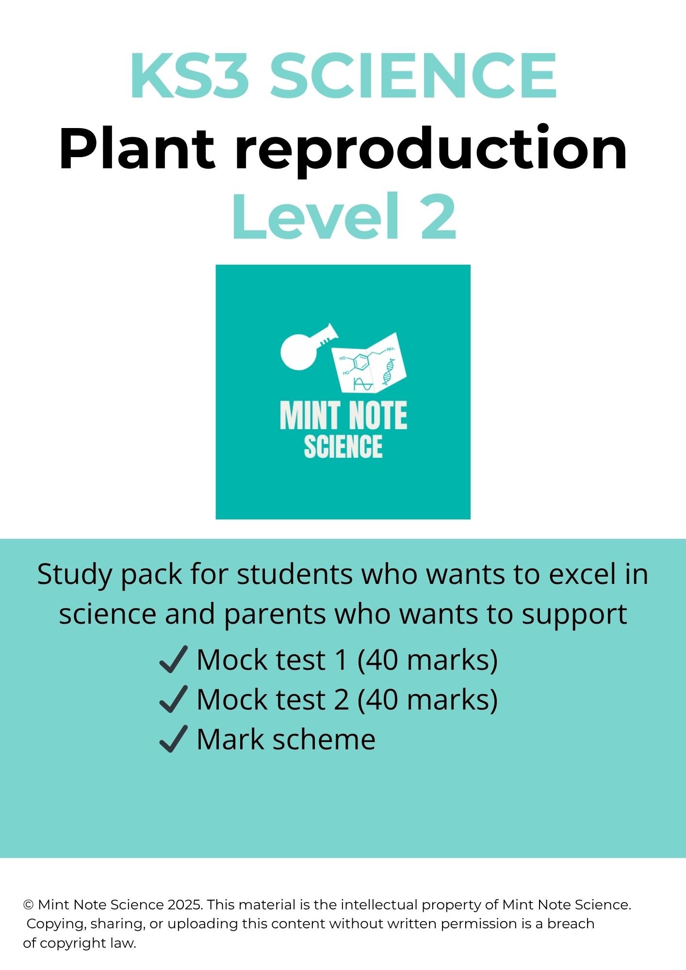 Mintnote Science_Level 2: Plants reproduction Exam practice pack