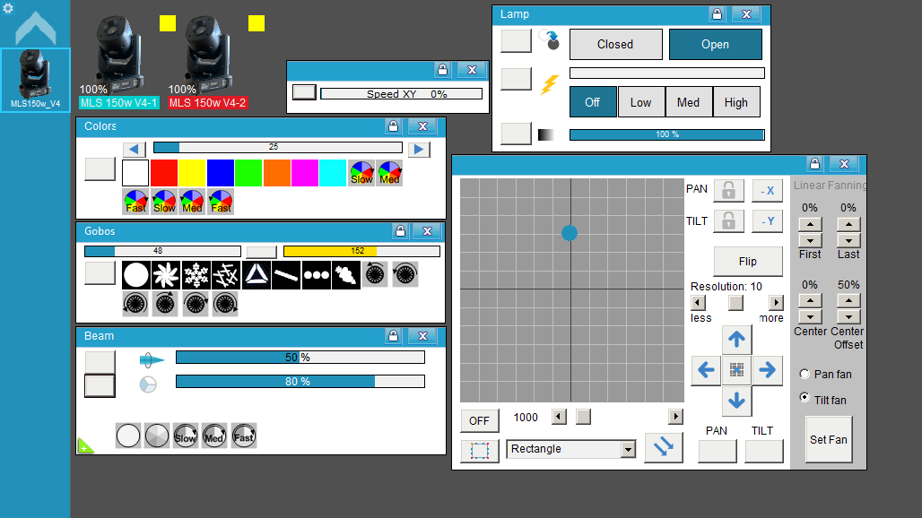 • Selección de 7 Gobos (propios del equipo) + Open + Shake + Rotación de la rueda de Gobos.
