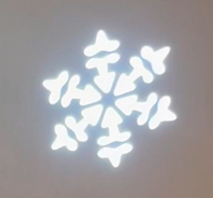 * Verifique, con un Fixture de pruebas (ckick), que subiendo el canal 3 al máximo y el canal 6 al valor 48, muestre el Gobo de la tercer foto.