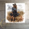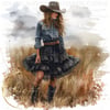 Stylish Cowgirl Wearing Denim Shirt and Black Ruffle Skirt PNG Illustration, American Wall Art, Cover Design, Art Prints, Cowgirls, Cowgirl Era, Country Western
