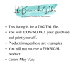 By purchasing from my shop, you will be added to my email newsletter. That way you won't miss a single new item or special deal! You can always unsubscribe.