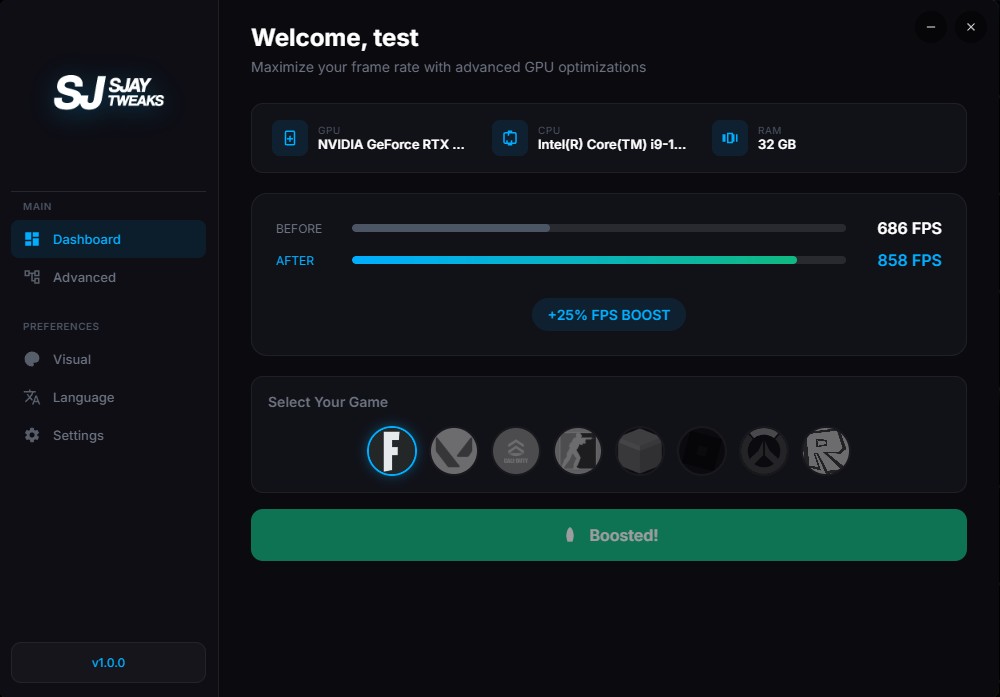 Experience gaming like never before with FPS Boost, the ultimate Dynamic Frame Stabilizer designed to obliterate lag, crush stutters, and push your frames to jaw-dropping heights. This isn’t your average “optimization tool” — it’s a game-changing engine that analyzes your system in real-time, dynamically adjusting every thread, process, and GPU cycle for maximum performance.