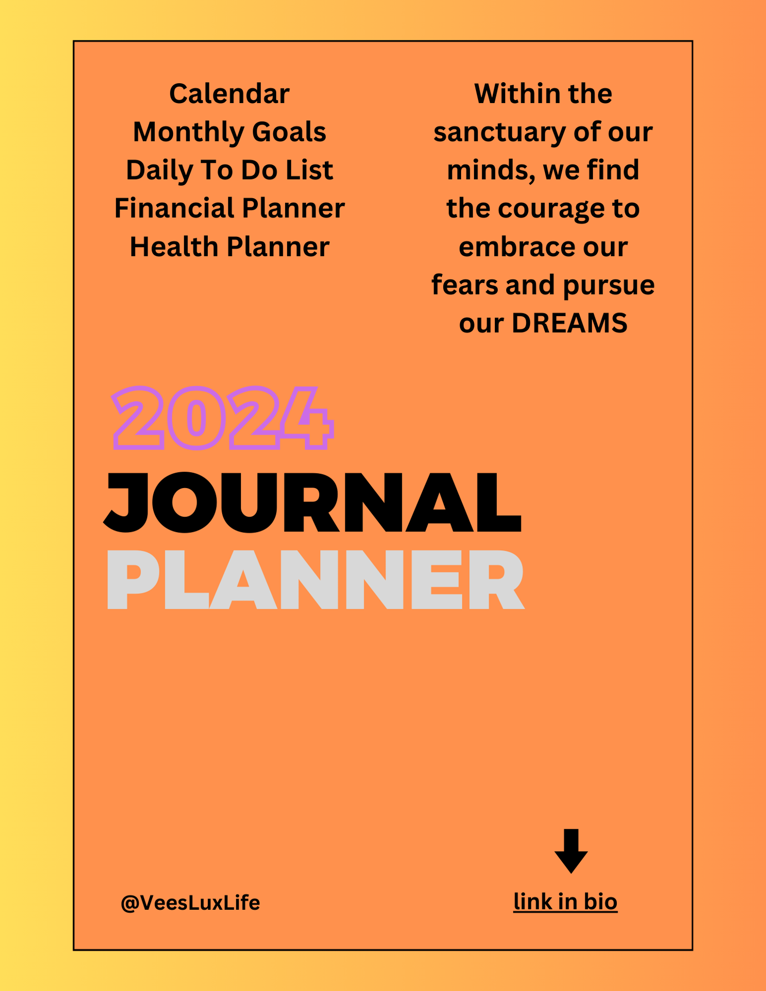 Step into the sanctuary of your mind and embark on a transformative journey towards personal growth and empowerment with "Mindful Dreams: A 2024 Journal Planner." This beautifully designed planner invites you to explore the depths of your thoughts and aspirations while cultivating the courage to embrace your fears and pursue your dreams.