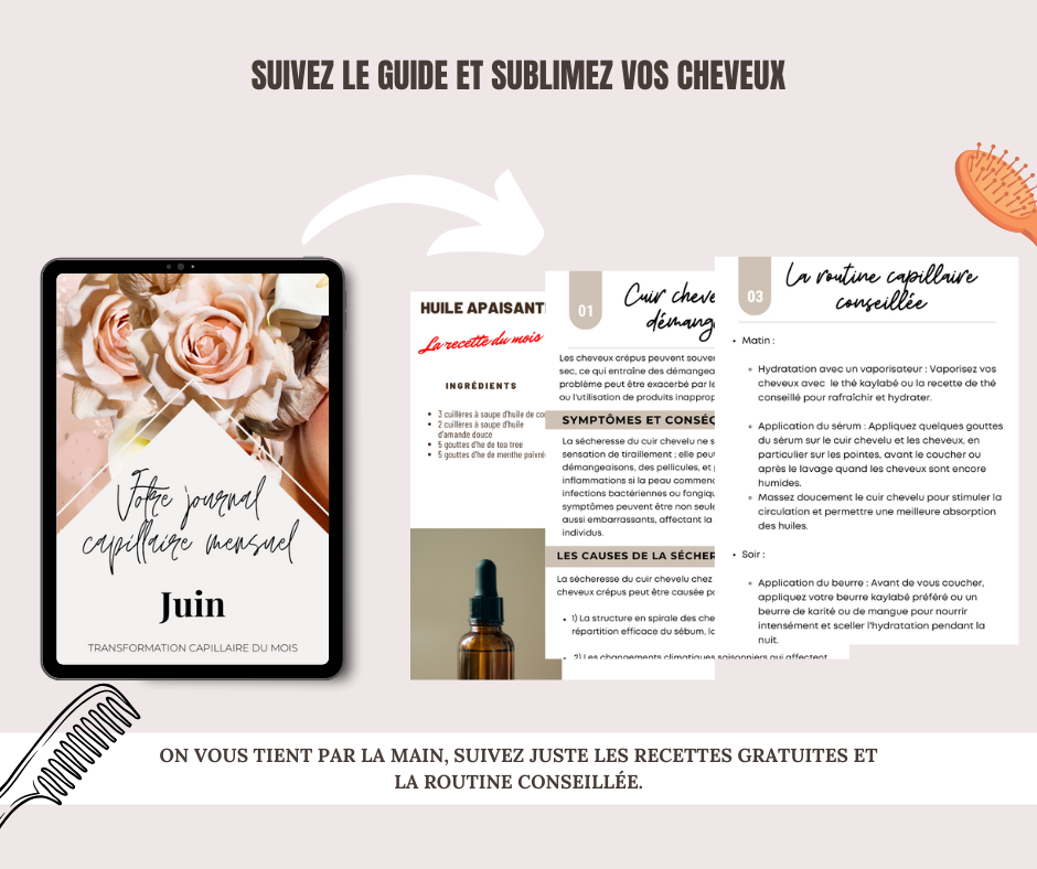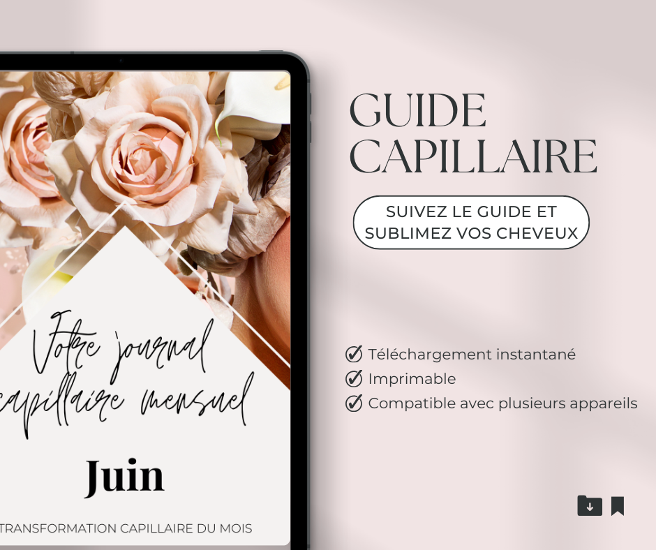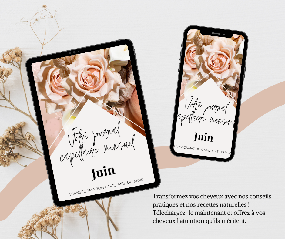 Que vous soyez en quête de remèdes pour renforcer vos cheveux, des astuces pour booster leur croissance ou des méthodes pour les garder hydratés et brillants, "Votre Journal Capillaire de Juin" est votre guide indispensable. Préparez-vous à accueillir l'été avec des cheveux magnifiques, bien préparés pour affronter la chaleur et l'humidité !