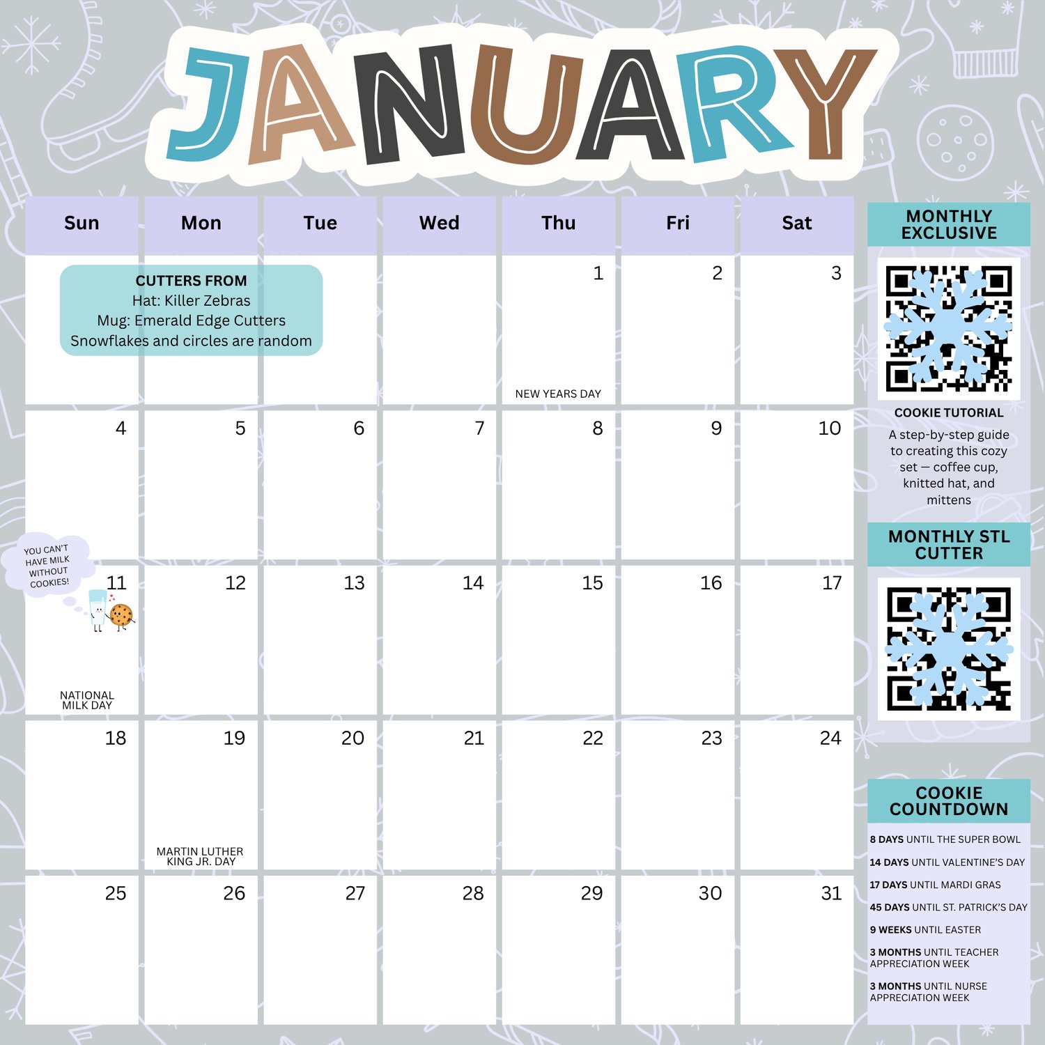 - Cookie Countdown at the End of Each Month β Stay on top of upcoming holidays all year long