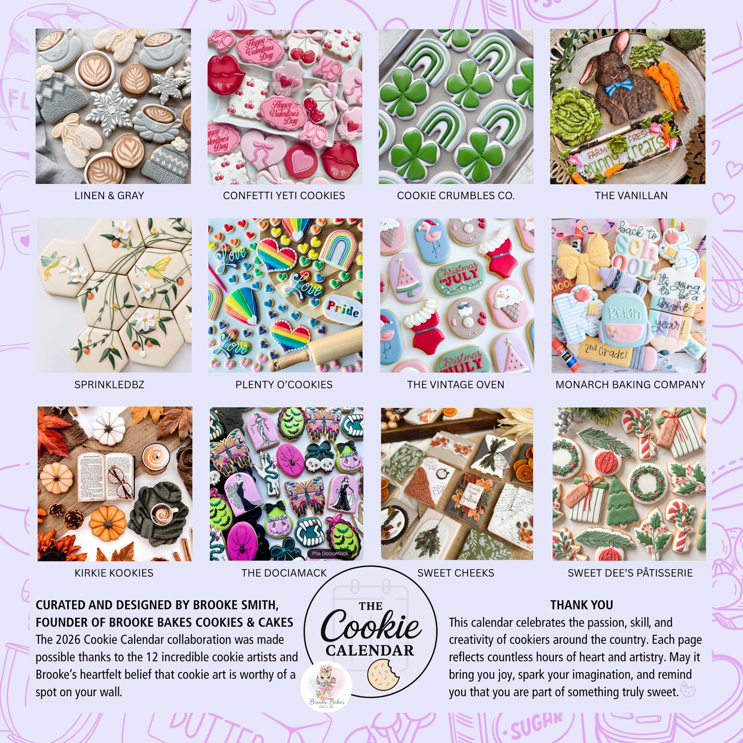 Curated and designed by Brooke Smith of Brooke Bakes Cookies & Cakes, this calendar was created to spark joy, creativity, and connection in the cookie world.
